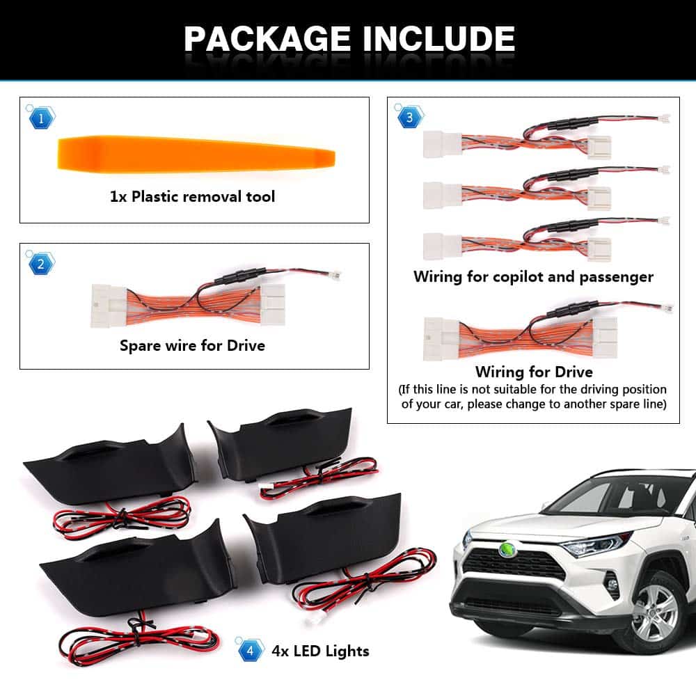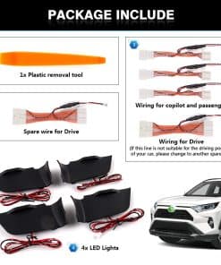 El kit de luces LED en el interior del mango de la puerta es perfecto para personalizar y agregar un toque de iluminación ambiental a tu Toyota RAV4 2019-2025. Las luces en los mangos de las puertas crean un ambiente romántico en el auto, mejorando tu experiencia de conducción y proporcionando una iluminación auxiliar delicada. Hechas de cuentas de lámpara LED mejoradas y material ABS de alta calidad, estas luces LED para el interior del auto son duraderas y eficientes. La instalación es rápida y sin necesidad de perforación, lo que te permite disfrutar de estas luces en pocos minutos. ¡Personaliza tu Toyota RAV4 con estas luces LED de ambiente y dale un toque único y especial a tu vehículo!