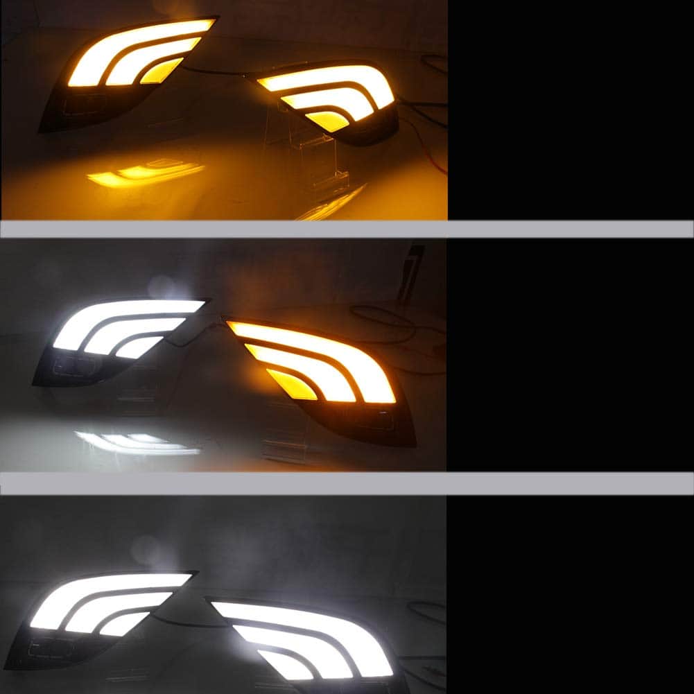 Nuestro kit de luces LED diurnas y de niebla está hecho de ABS de alta calidad, LED de alta intensidad y lente de PMMA de alta calidad. Diseño único con carcasa no corrosiva y lente de alto impacto. ¡Luz de día + señal de giro TODO EN UNO! Bombillas de luz LED CREE que proporcionan excelente transmisión de luz. Tecnología avanzada de corriente constante, luminiscencia bien distribuida. Actualice su vehículo para aumentar la seguridad y durabilidad. ¡Conduzca de forma más segura, luzca mejor! Especificaciones: Condición: 100% nuevo Tamaño (como se muestra en la imagen) DRL LED Color de la carcasa: Negro Color de la luz: blanco xenón (6000K) + ámbar Voltaje de funcionamiento: 12V CC / Potencia: 72W Temperatura de funcionamiento: -40 ~ 60 Material: ABS de alta calidad + lente PMMA + luz LED Características de protección: protección contra polaridad inversa, protección contra circuito abierto. Tipo de medición a prueba de agua: después de las pruebas de simulación de lluvia pruebas de inmersión de simulación de lluvia. Prueba de pulverización de sal: aprobó la prueba de pulverización de sal. Conexión de cables: + Negro para negativo + Rojo para ACC + Amarillo para señal de giro positiva COMPATIBILIDAD Compatible con Toyota Camry 2018 en adelante como luces diurnas frontales para parachoques delantero.