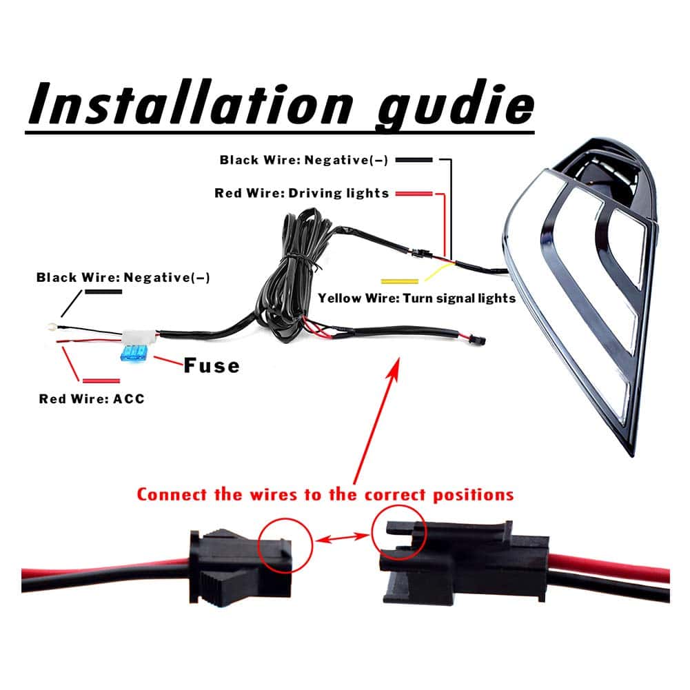 1. Luz LED diurna incluye luz diurna, señal de giro todo en uno. NOTA: La lámpara no incluye la luz de niebla, ver imagen.