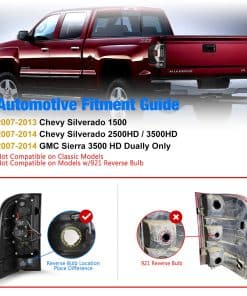 Estas luces traseras LED no son compatibles con GMC Sierra 2007-2013. Apto para Chevy Silverado 2007, 2008, 2009, 2010, 2011, 2012, 2013. Asegúrate de que tu vehículo esté incluido en nuestra lista de compatibilidad.