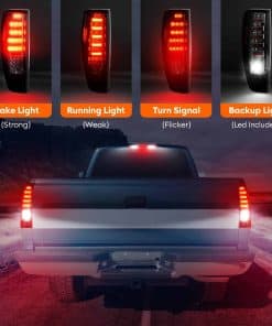 Tresound es un fabricante profesional de luces LED que ofrece una amplia gama de soluciones de iluminación LED de alta calidad. Las luces LED de Tresound están diseñadas para ser estéticamente atractivas. Las luces LED de Tresound están diseñadas para ser duraderas y confiables. Las luces LED de Tresound están diseñadas para ser fáciles de instalar y mantener. LUZ TRASERA TODO EN UNO: luz LED de circulación, luz de freno, luz de giro, luz de reversa (luz de marcha atrás). La luz de marcha atrás contiene perlas LED, no necesita reutilizar su vieja bombilla de marcha atrás. LUZ DE FRENO TODO EN UNO: función de luz de freno + luz de carga. Compatible con: para Chevy Colorado 2004-2012, para GMC Canyon 2004-2012. Especificación: Enchufar y listo; Certificación DOT. Color de la luz trasera: Carcasa cromada Lente ahumado. Color de la tercera luz de freno: Carcasa cromada Lente roja. Paquete incluido: 1 par de luz trasera 1 x Tercera luz de freno. Consejos: Después de quitar su luz de freno anterior, por favor use un poco de alcohol para limpiar el área de la junta y el borde en la luz. Luego adhiera a la luz.