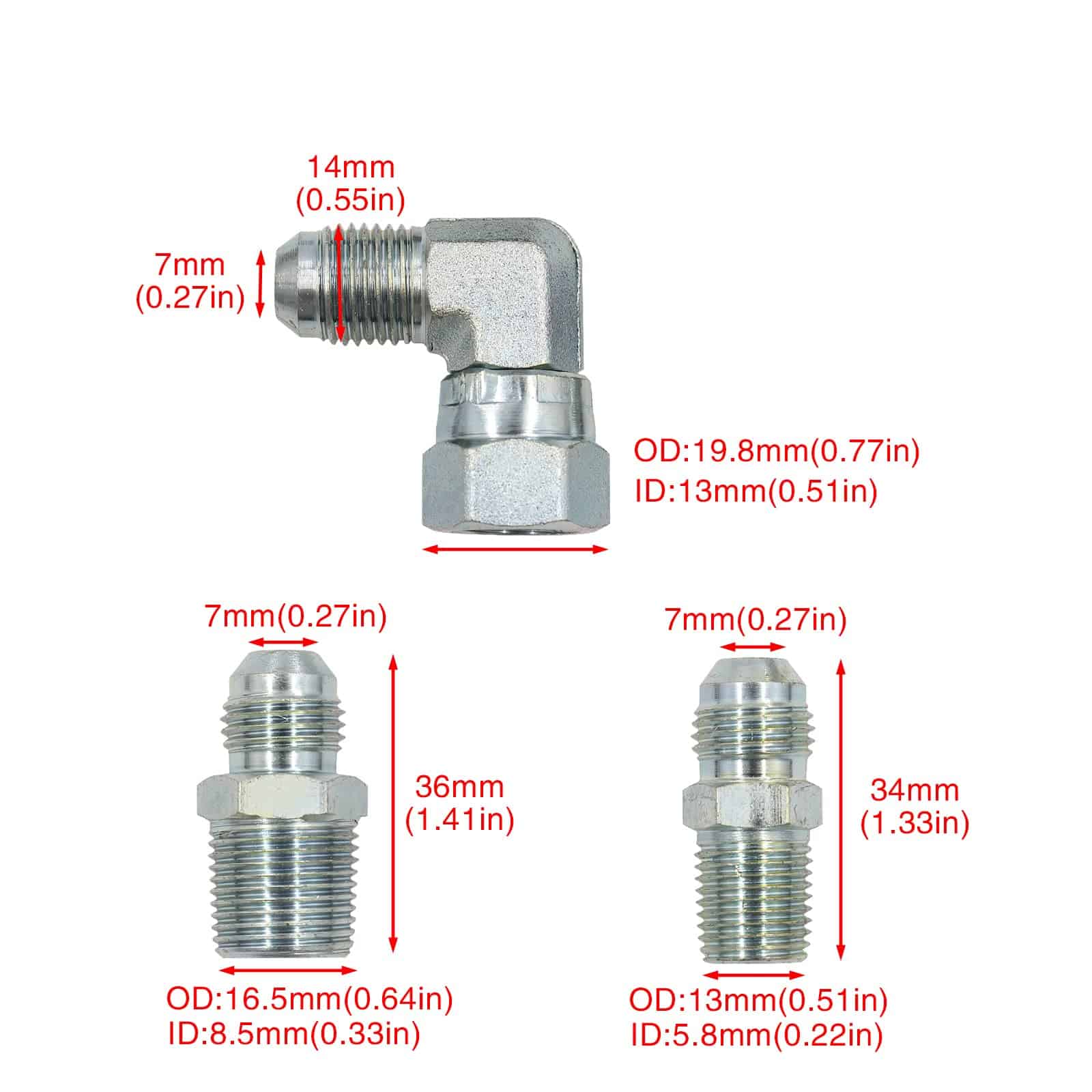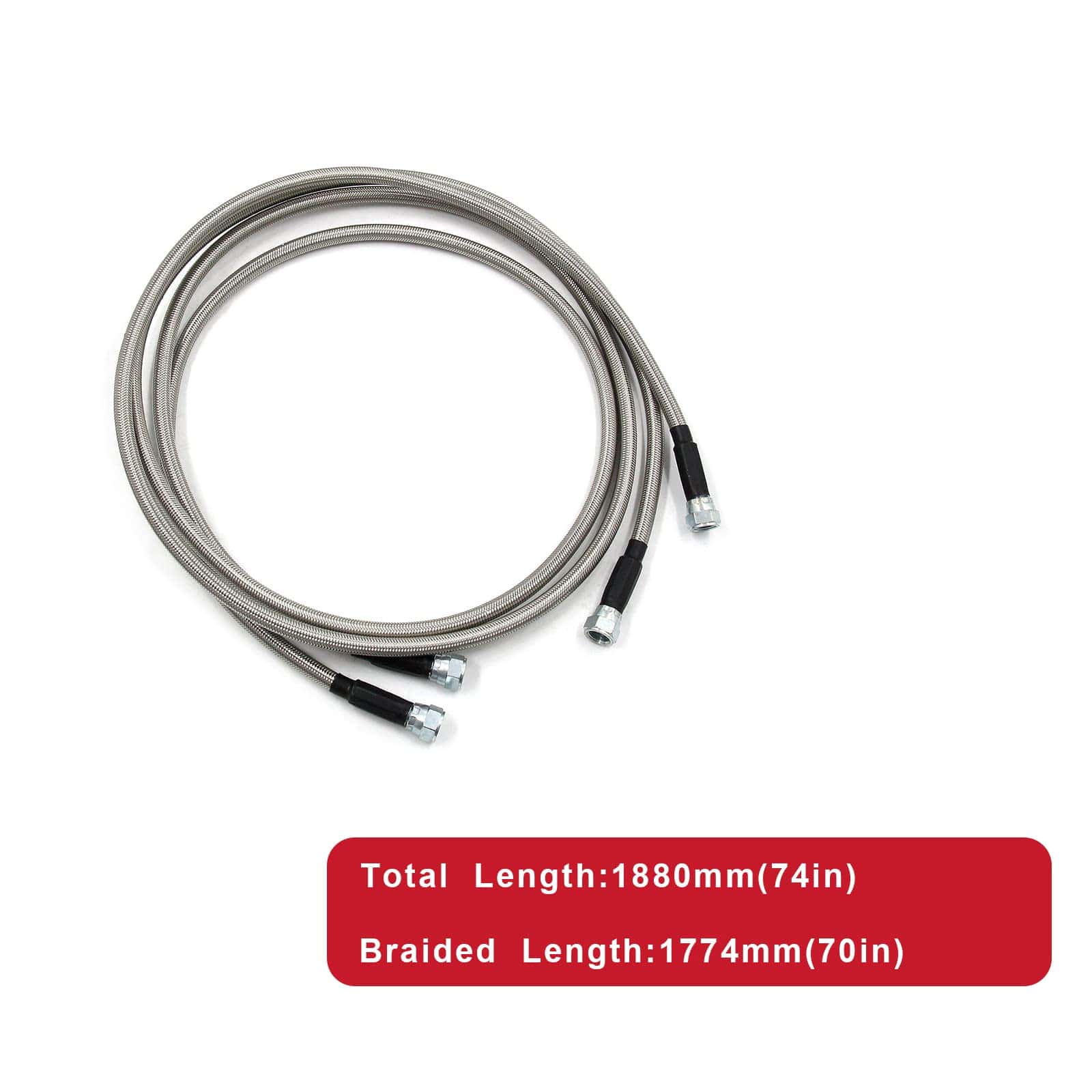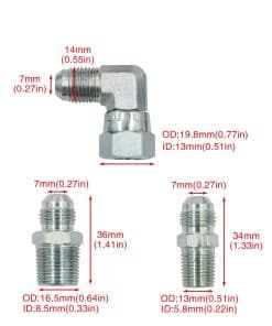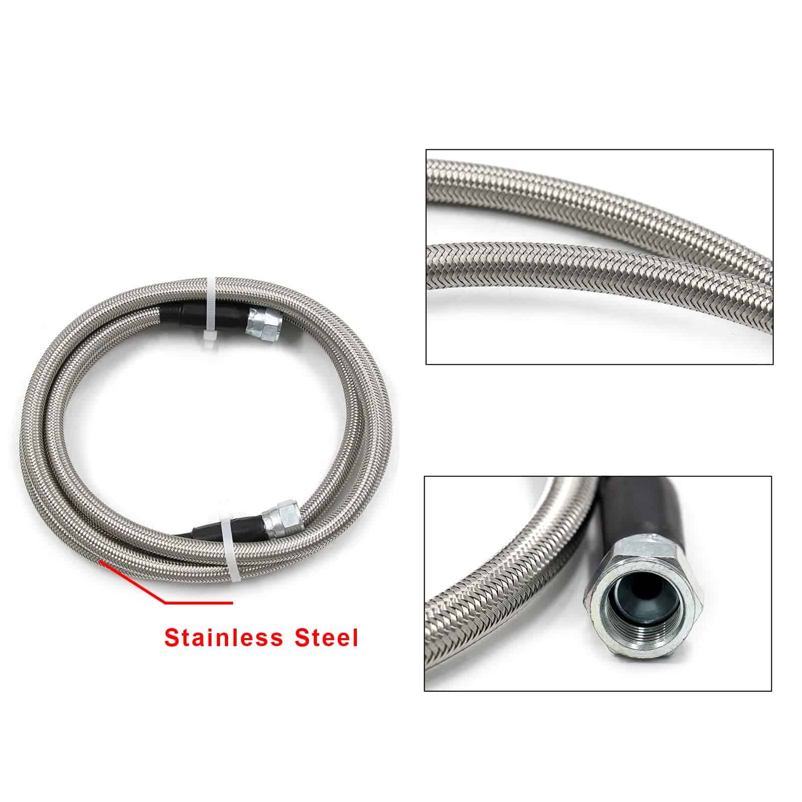 Compatibilidad Se adapta a Turbo 350 (Algunos son de 1/4″ NPT) Se adapta a Turbo 400 Se adapta a Turbo 200 – 200R4 Se adapta a Power Glide (Algunos son de 1/4″ NPT) Se adapta a 700R4 – 4L60 – 4L60E – 4L65E Se adapta a 4L80E: 1996 y posteriores Se adapta a Ford C4 – C6 – AOD La mayoría de los vehículos universales, incluidos autos y camiones Chevy Ford Mopar GM GMC Buick Cadillac. Mangueras/líneas de transmisión trenzadas flexibles de acero inoxidable; SOLO se ajustan a la transmisión 4L80E de 1996 y más reciente; Cada manguera de 3/8″ de diámetro interno tiene aproximadamente 70″ de largo con extremos invertidos AN-6; Mangueras -6AN con extremos giratorios: 7/16 O.D. y 3/8 I.D