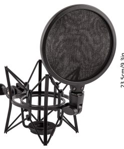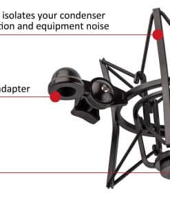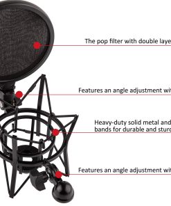 Compatible con micrófonos Rode K2, NT1-A, NT1000, NT2-A, NT2000, NTK, Podcaster y Procaster. El soporte de choque puede aislar la mayoría de los micrófonos de condensador de estudio de la vibración física, el ruido del piso y del soporte, haciendo que tu canto sea más claro. Construcción resistente y duradera de metal sólido y fuertes bandas de goma para un uso prolongado. El filtro anti-pop con pantalla de doble capa puede reducir efectivamente el popping vocal y la sibilancia para garantizar una mejor calidad de sonido de grabación. Rosca estándar de 5/8″ con un adaptador de tornillo de 3/8″-5/8″, para que puedas montarlo en todos los soportes de micrófono estándar.