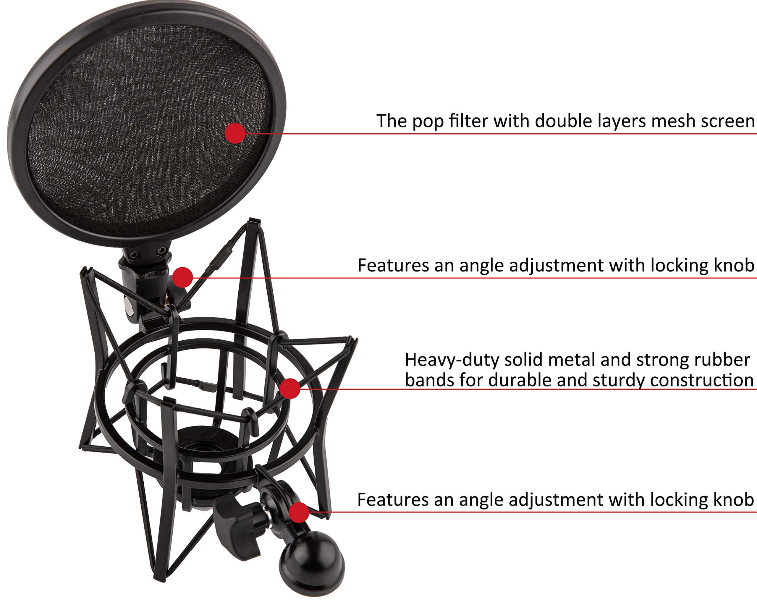 4. El filtro anti-pop con pantalla de doble capa puede reducir efectivamente el popping vocal y la sibilancia para garantizar una mejor calidad de sonido de grabación.