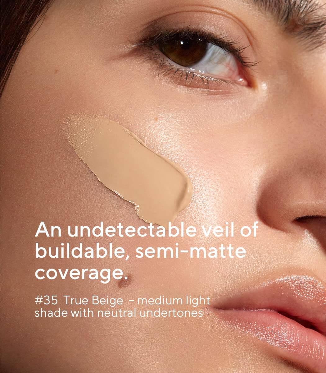 Desarrollada por expertos en cuidado de la piel, esta base de maquillaje mineral liviana proporciona cobertura sin costuras sin dejar rastro de su presencia en 6 tonos semi-mate que se adaptan a la textura única de la piel para una tez fresca, suave y uniforme que perdura. Potenciada por activos cosméticos potentes para promover una piel más rellena y saludable con cada uso. Los péptidos de origen vegetal ayudan a estimular la producción de colágeno, mientras que el ácido hialurónico héroe y los extractos ricos en antioxidantes de arándano y raíz de peonía nutren, hidratan y protegen. Formulada con pigmentos minerales puros sin colorantes sintéticos ni de origen animal. Dermatológicamente probada.