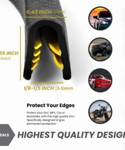 Di adiós a los arañazos en los bordes de las puertas de tu coche, ventanas, maletero y otros bordes metálicos con este Borde Negro de M M SEALS. Se trata de una tira de goma con enganches metálicos internos, por lo que puedes añadir un sello protector a los bordes afilados y duros de vehículos y muebles metálicos.