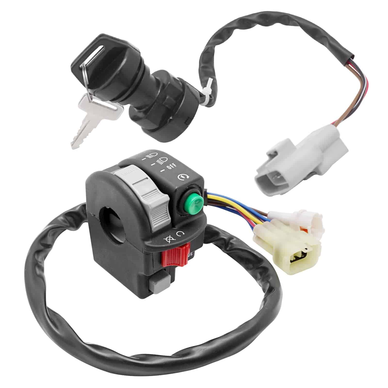 Descripción Marca 28P-83972-00-00 28P-82510-00-00 28P-82510-01-00 Paquete: Interruptor del manillar izquierdo x 1 Interruptor de encendido con 2 llaves x 1 Apto para ATV Yamaha como sigue Grizzly 550 YFM550 2009-2014 Grizzly 700 YFM700 2009-2023 Kodiak 450 YFM450 EPS 2021-2023 Excluye la Edición sin EPS Kodiak 450 YFM450 EPS SE 2020-2023 Excluye la Edición sin SE Kodiak 700 YFM700K EPS 2018-2023 Excluye la Edición sin EPS Kodiak 700 YFM700K EPS SE 2016-2023 Excluye la Edición sin SE