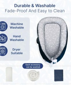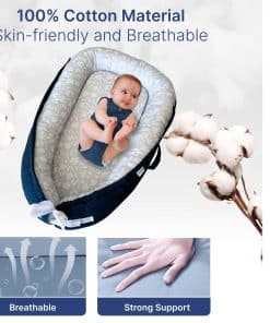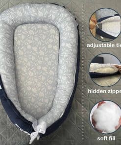 1. Nido de bebé hecho de algodón transpirable para excelente circulación del aire y comodidad. 2. Con certificaciones de seguridad para un entorno seguro. 3. Diseño portátil y ligero para uso en casa y al aire libre. 4. Tamaño ajustable para bebés de 0 a 24 meses. 5. Diseño de doble cara con colores únicos. 6. Fácil de limpiar con funda desmontable. 7. Regalo perfecto para nuevos padres. 8. Empaquetado al vacío para conservar su forma original.