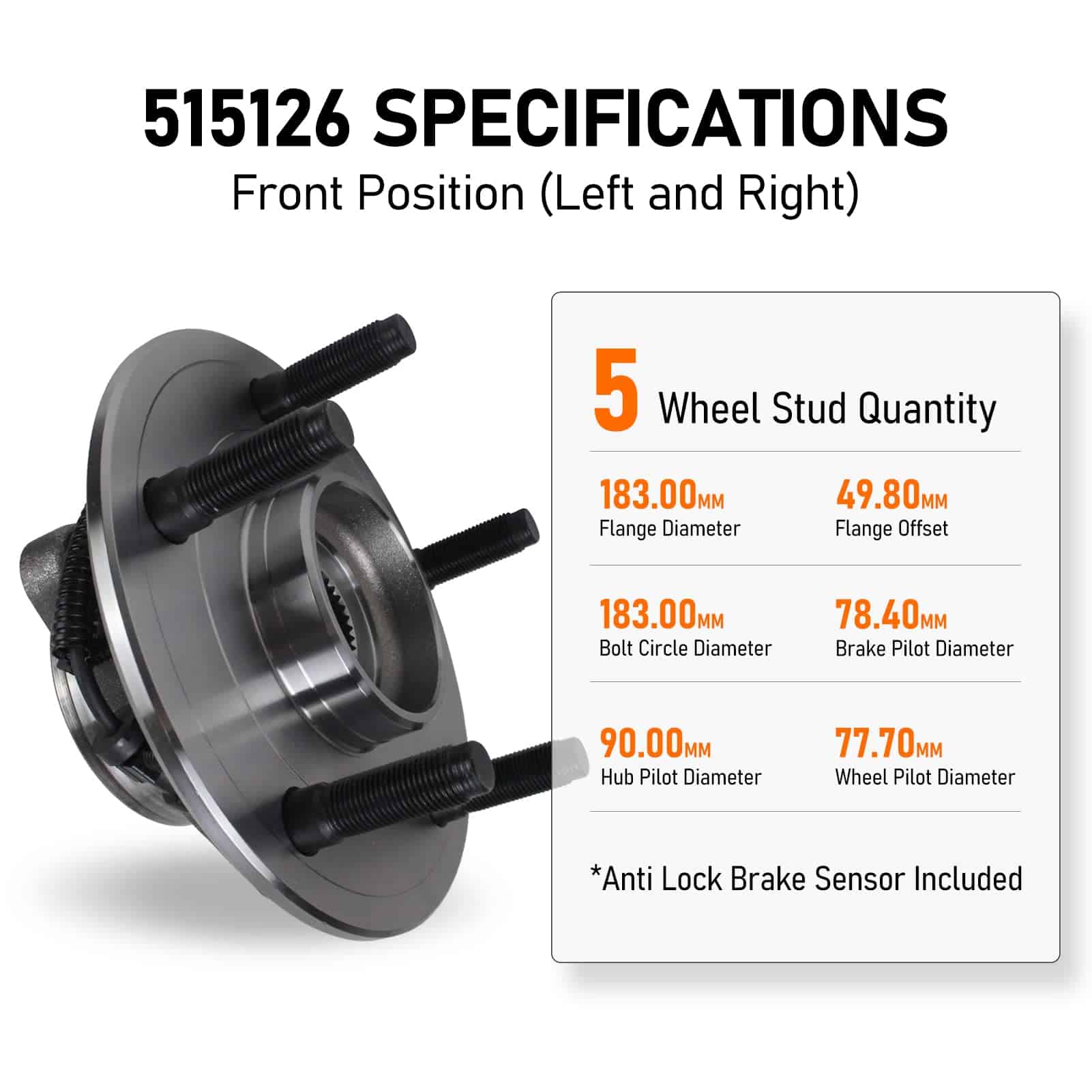 Qty 1 x Parte 515126 Ensamble de Cubo de Rueda y Rodamiento