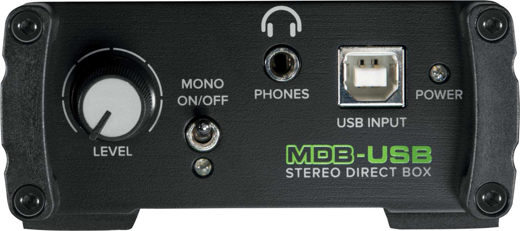 Con el DI estéreo MDB-USB alimentado por bus, los días de depender de tu conector para auriculares para llevar audio desde una computadora a equipo analógico han terminado. Combinando una interfaz de audio de alta resolución con un DI estéreo libre de ruido y distorsión, el MDB-USB convierte tu audio digital en una salida limpia, balanceada y estéreo. Con control de nivel de salida, salida para auriculares y suma mono para máxima versatilidad. Las salidas analógicas son dobles XLR con ground lift. Cable USB incluido.