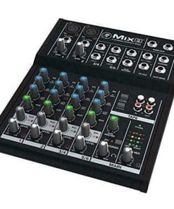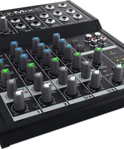 Mezcladora de tamaño mediano con la calidad Mackie de escala completa Obtenga funciones de escala completa y calidad de audio con la mezcladora de audio de escritorio de tamaño mediano Mackie Mix8. Esta compacta mezcladora de 6 entradas ofrece un par de preamplificadores de micrófono con alimentación fantasma conmutable para sus micrófonos de condensador, y dos canales adicionales ofrecen entradas para teclados, cajas de ritmo y otro equipo estéreo. Pero lo que hace que la Mix8 se destaque de mezcladoras similares aquí en Sweetwater son sus ecualizadores de 3 bandas y envíos auxiliares en cada canal. Para mayor comodidad, la Mackie Mix8 incluso está equipada con una ruta de E/S RCA para grabación y controles de volumen separados para las salidas principal y de auriculares.