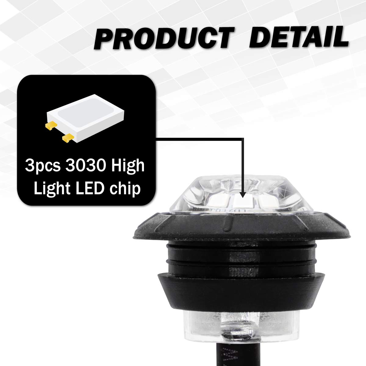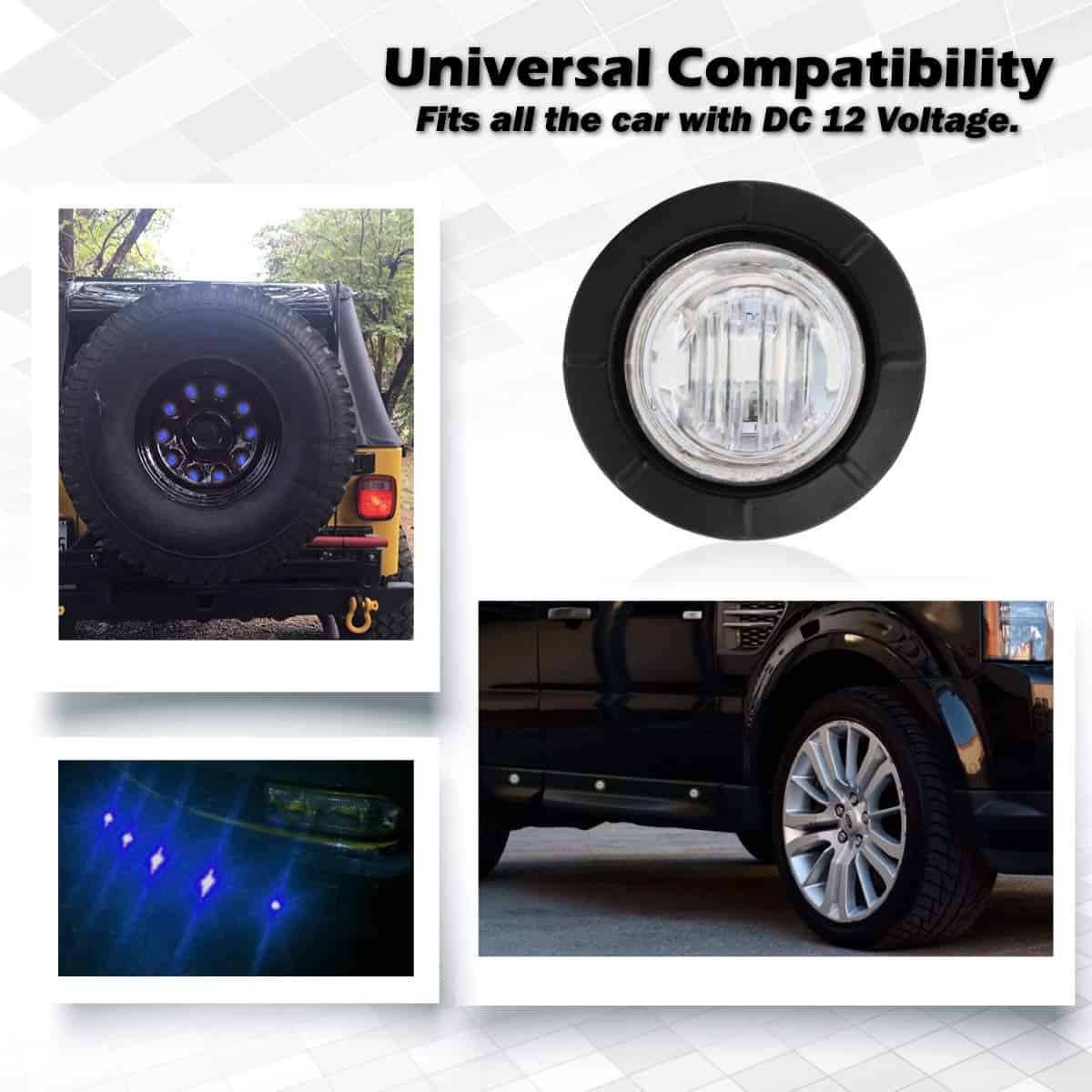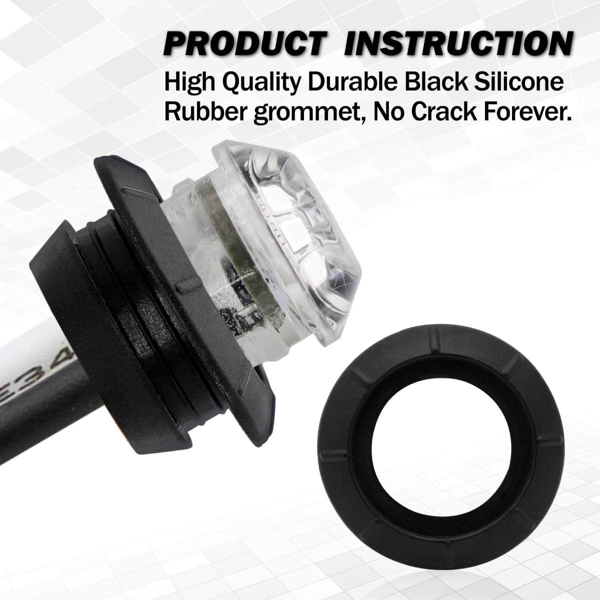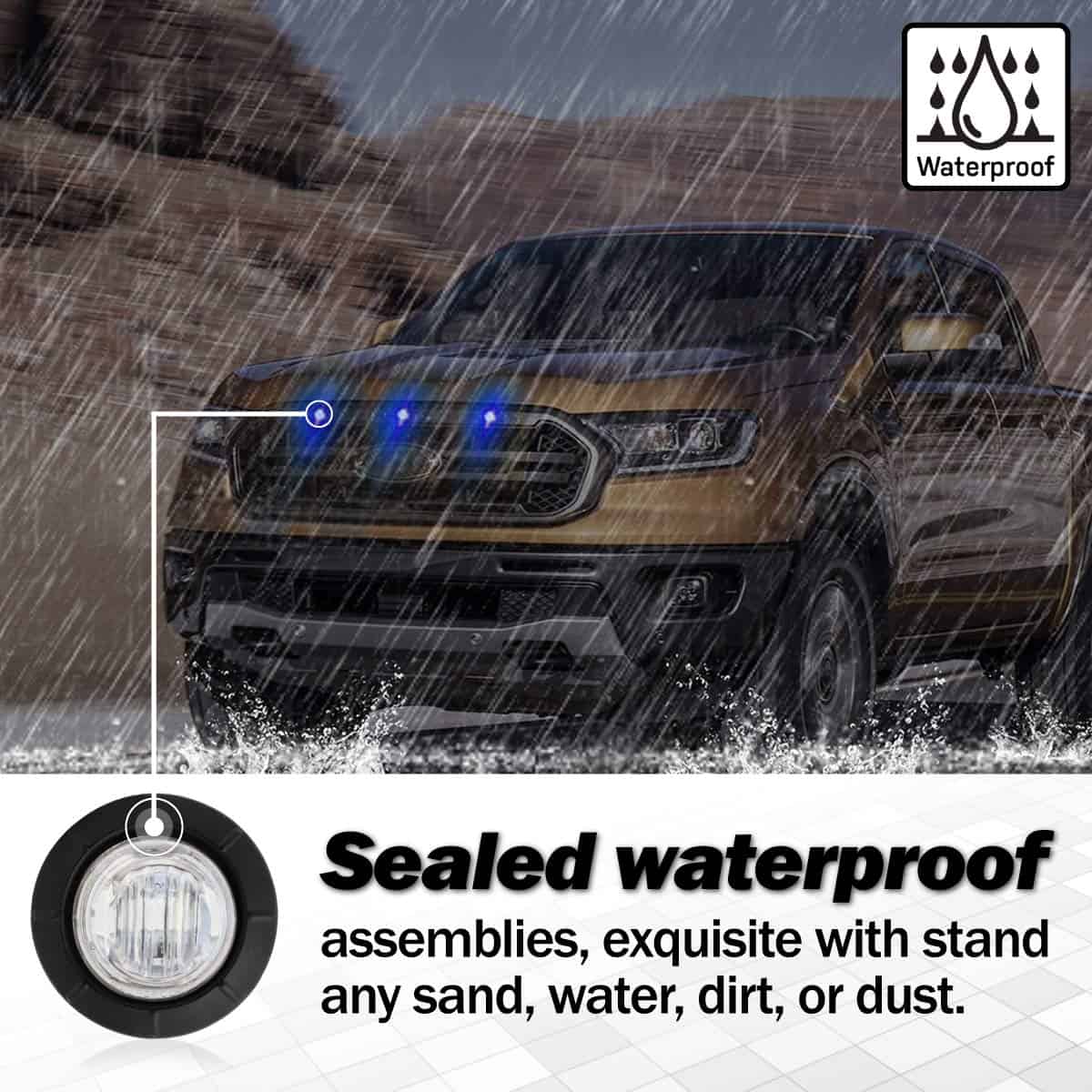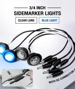 Especificaciones: Dimensiones: 3/4 pulgadas Número de LEDs: 3 LED Color de las Luces: Azul Color de la Lente: Claro Voltaje de Operación: 12V Material de la Carcasa: Ojal de Goma Tamaño y Conexiones: Diámetro Exterior: 27.5 mm (1.08») Diámetro Interior: 18.5 mm (0.75») Altura: 20.8 mm (0.8») Longitud del Cable: 200 mm (8») Funciones: Luces Marcadoras Laterales / Lámparas de Marcador / Luces Giratorias / Luces de Freno, etc. Fácil de instalar en todas las ubicaciones: Lateral Delantera Trasera Bajo el Bastidor como Luz de Señal de Seguridad Exterior por la Noche. Se incluyen dos cables de ENCHUFE y ñojales de goma de silicona negra. Aplicación: Universal, especialmente. Funciona en cualquier vehículo de 12V como Camiones, Remolques, Camionetas, Autobuses, Furgonetas, Camiones, SUV y Barcos, etc. Garantía de Calidad de 2 Años, si tiene alguna pregunta, no dude en contactarnos.