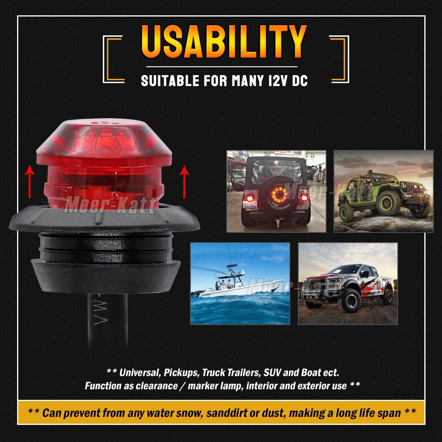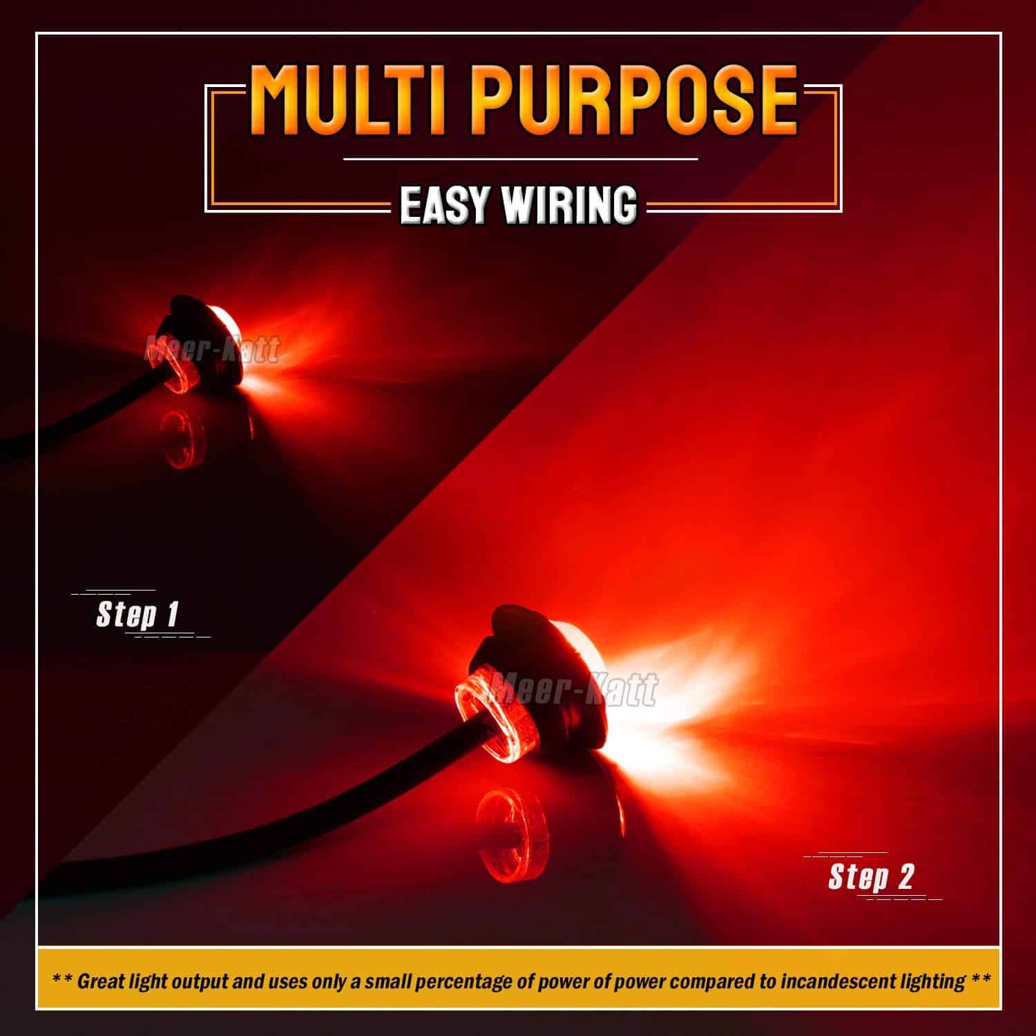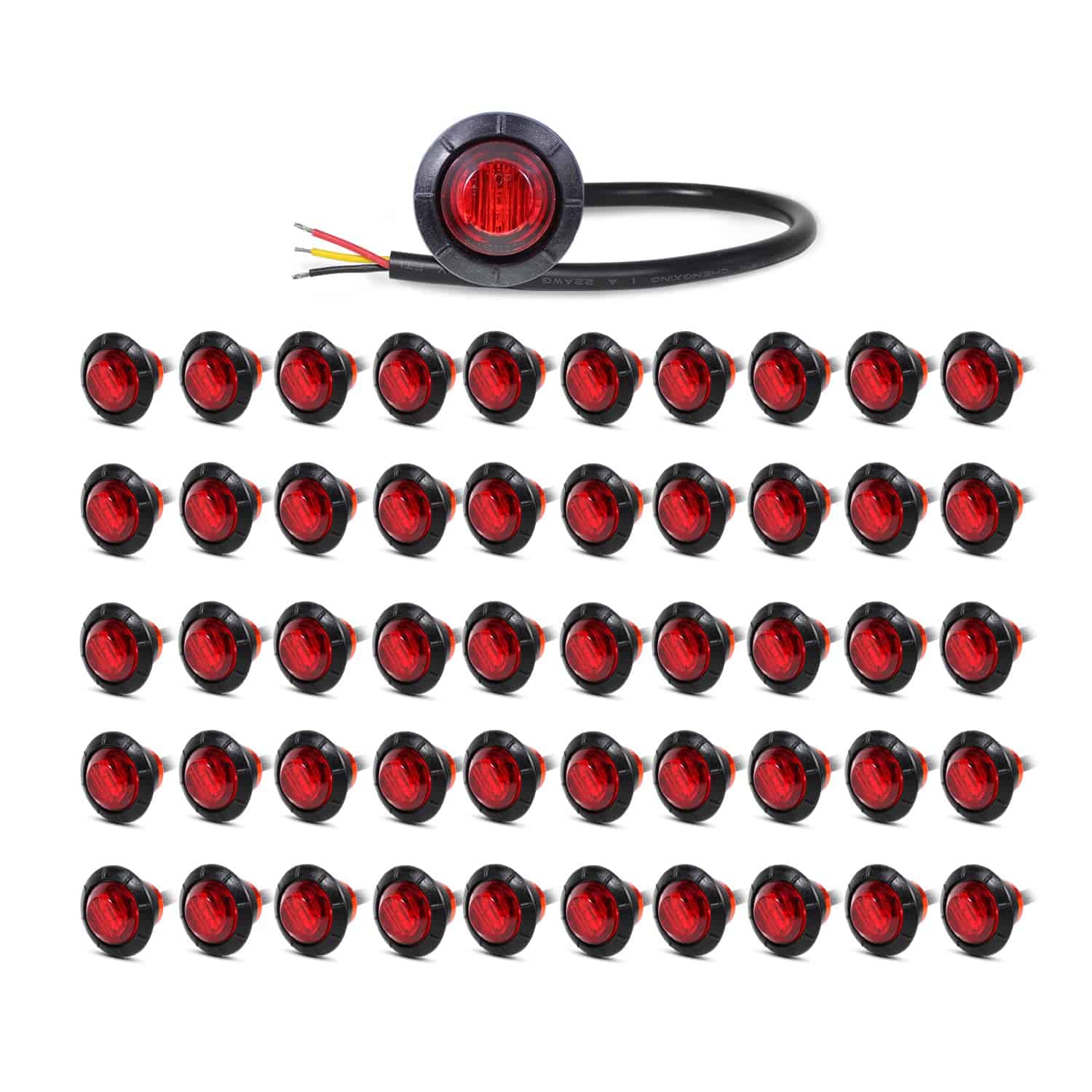 (Pack de 50) Luz de marcador lateral roja de 3/4″ redonda Mini con Grommet 3 LED 12V DC