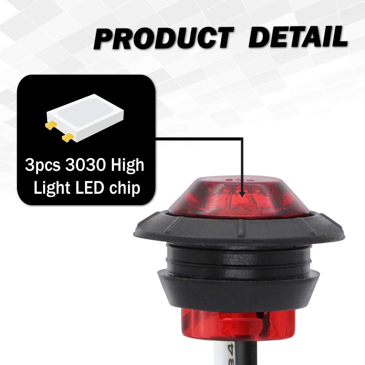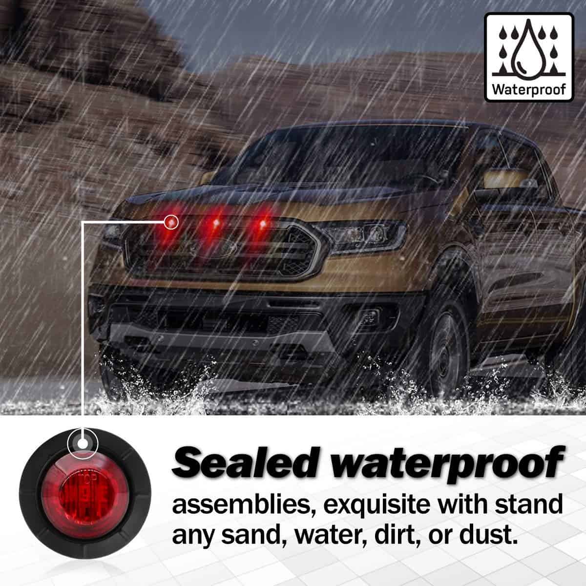2. (Paquete de 100) Luz Indicadora Lateral Trasera de Freno LED Mini Redonda de 3/4″ con Lente Roja para Universal.