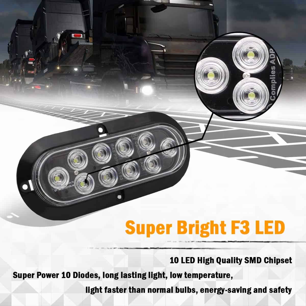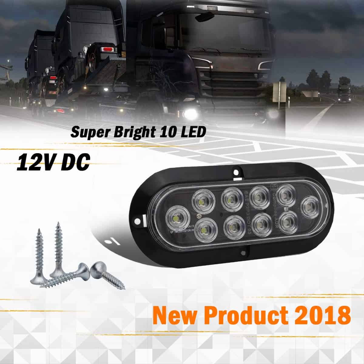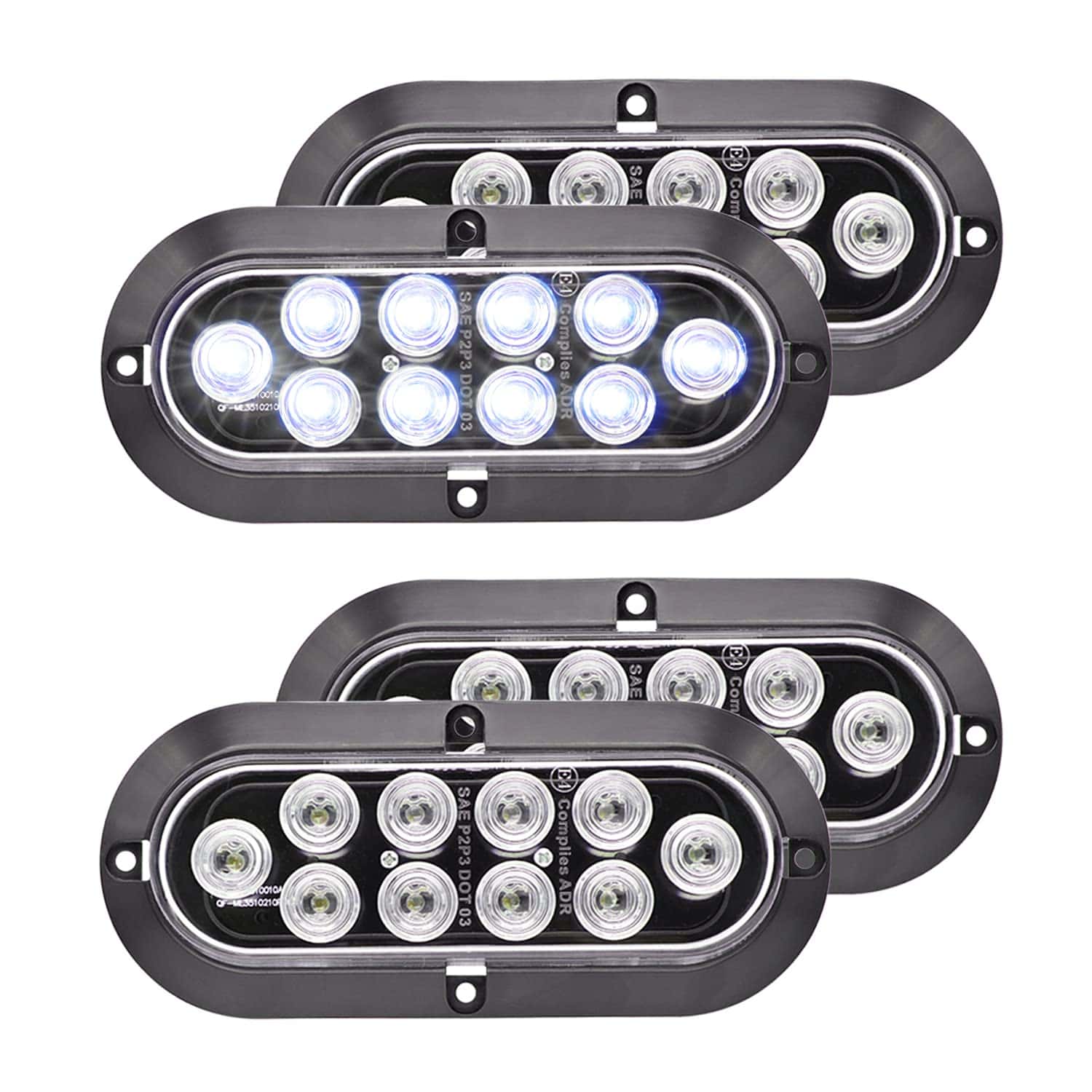 (Paquete de 4) Luz Marcadora Lateral Ovalada Blanca Intermitente de Cola LED de 6″ Pulgadas 10 LED