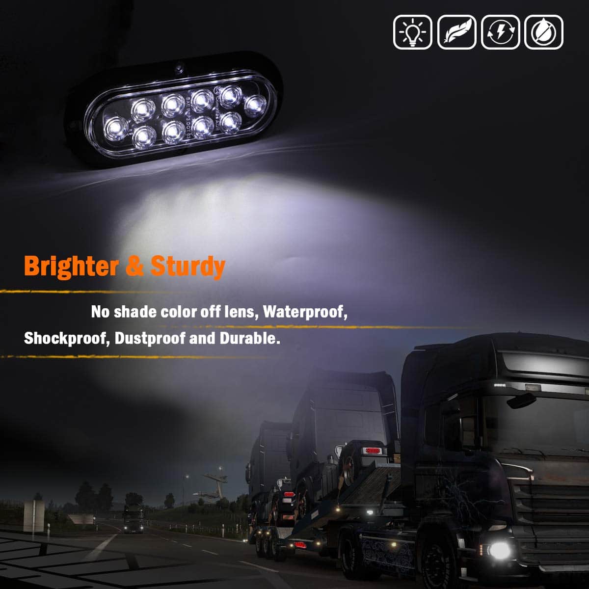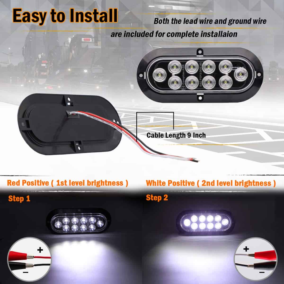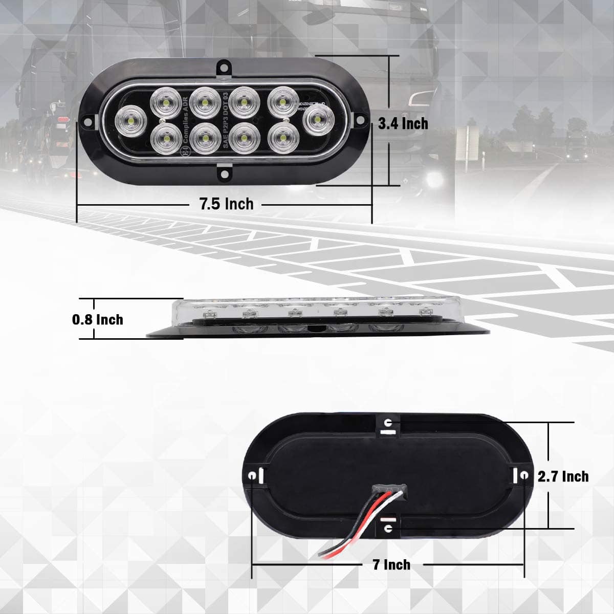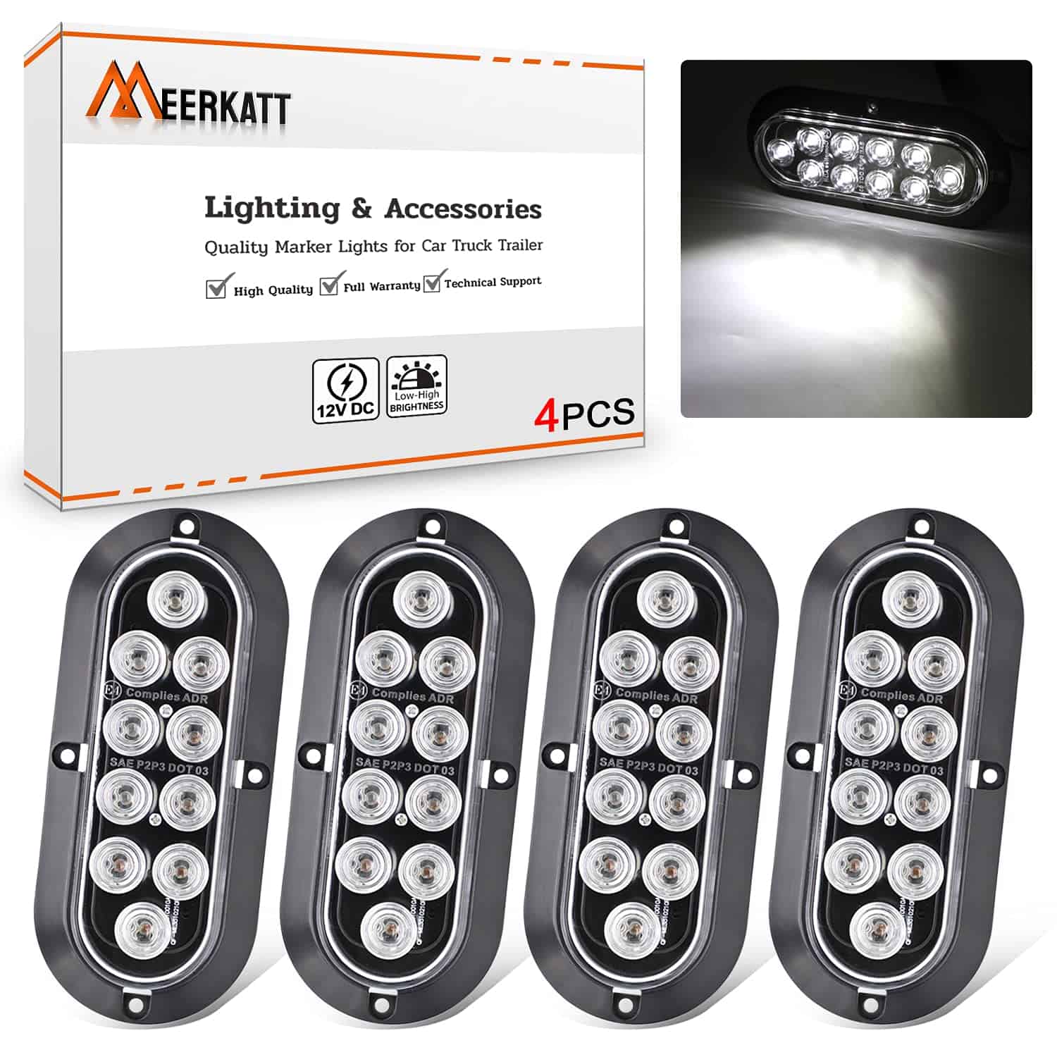 (Paquete de 4) Luz Marcadora Lateral Ovalada Blanca Intermitente de Cola LED de 6″ Pulgadas 10 LED