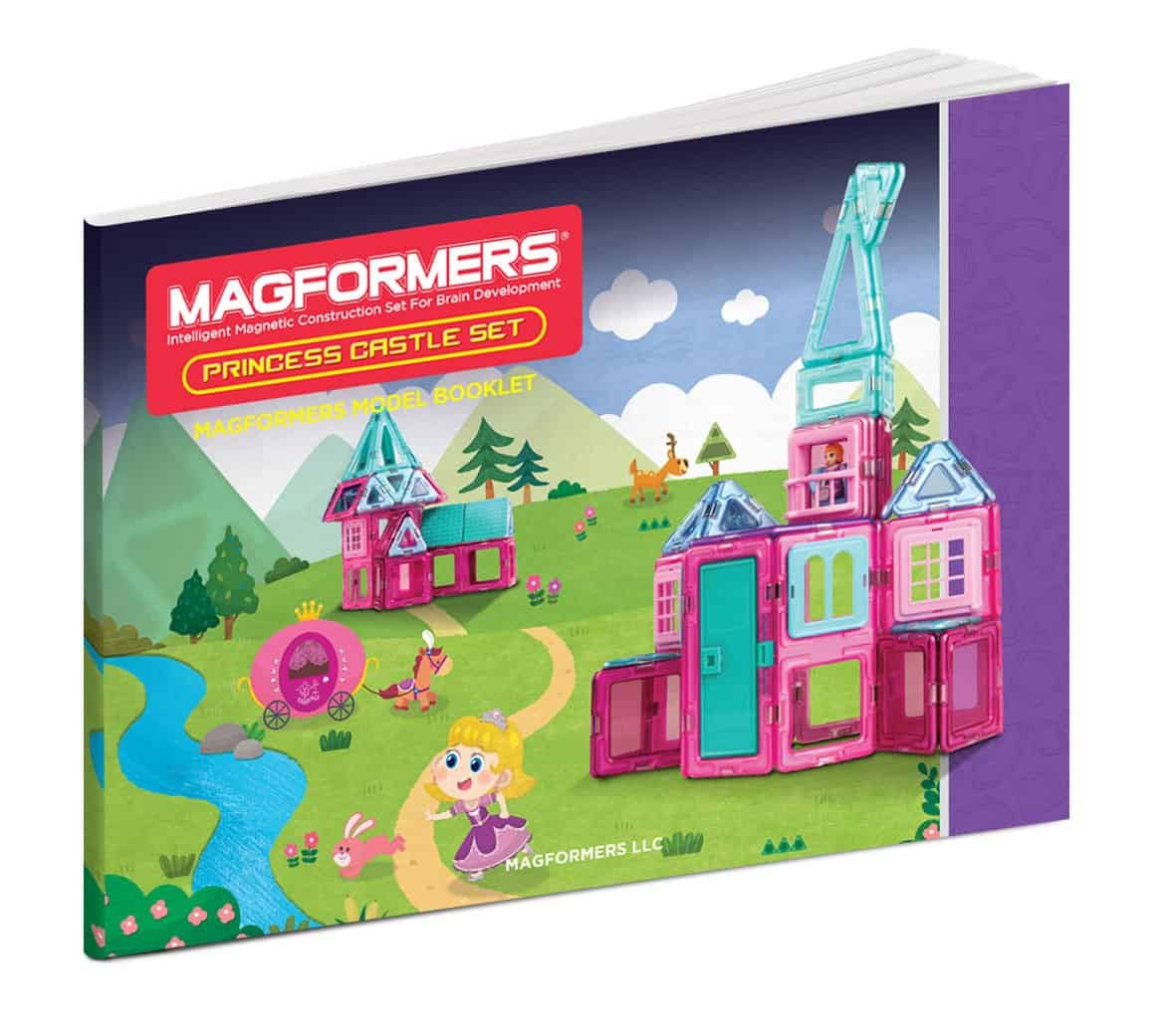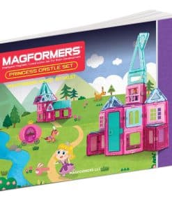 Construye castillos con el set de 78 piezas Magformers Castillo de Princesa. ¡La princesa de Magformers reside en el Castillo Mágico! Observa cómo mira desde su balcón o ventana. ¡Sigue las ideas del folleto incluido para construir y construir un castillo de ensueño, un castillo de hielo, un castillo de juegos y más! Lleva a la princesa de Magformers afuera para ver los árboles y escapar de los hechizos mágicos de las brujas. Contiene 8 formas geométricas diferentes en muchas variedades, incluyendo 18 triángulos, 18 cuadrados, 6 rectángulos, 2 hexágonos, 4 rombos, 4 trapecios, 6 triángulos isósceles de ángulo recto, 6 mini rectángulos, ¡las posibilidades de construcción son infinitas! ¡Agrega balcones, paredes, ventanas y árboles y una princesa a tu creación! Cuando se acabe el tiempo de juego, usa el poder magnético para simplemente apilar y almacenar.