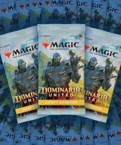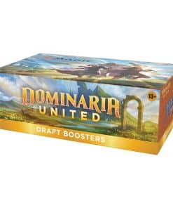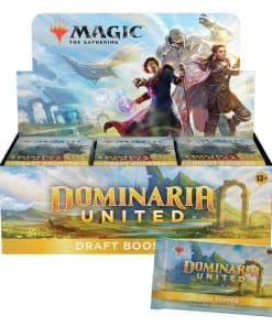 La Caja de Sobres de Draft de Dominaria United contiene 36 Sobres de Draft de Dominaria United y 1 carta extra de Aluminio Tradicional. Cada Sobre de Draft contiene 15 cartas y 1 carta de ficha/anuncio, incluyendo una combinación de 1 carta de rareza Rara o superior y 3 cartas Infrecuentes, 10 Comunes y 1 carta de Tierra. El borderless foil de Planeswalker mítico tradicional en <1% de los sobres. El foil tradicional de cualquier rareza reemplaza una Común en el 33% de los sobres.