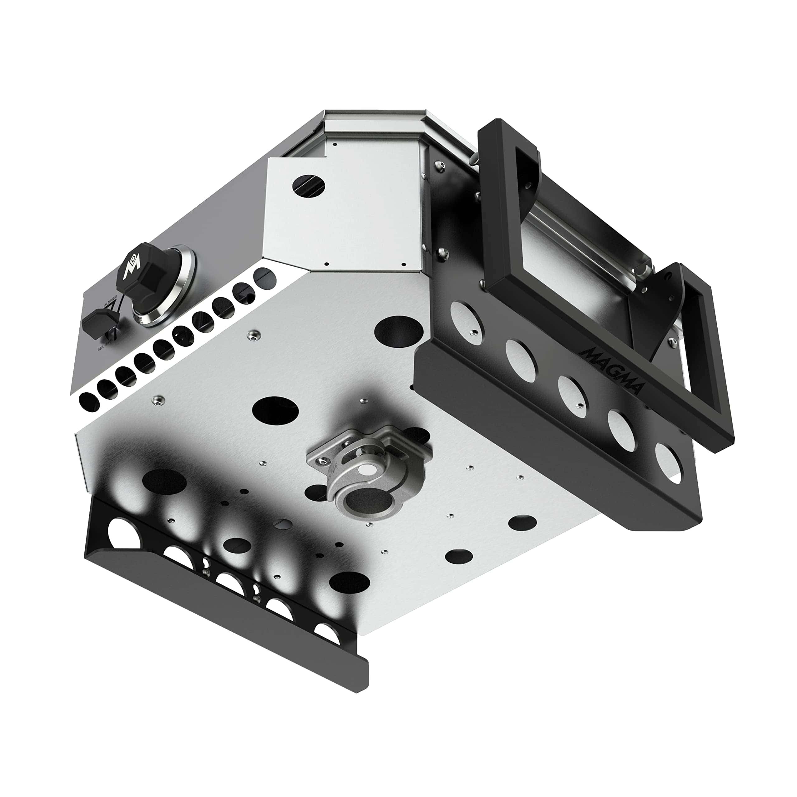 Monta cualquiera de las parrillas rectangulares de Magma, Crossover Firebox, o mesa con este soporte Quad Pod de altura de mesa. Construido con tubos de aluminio y componentes de aluminio fundido. Incluye una abrazadera de liberación rápida para un montaje fácil y rápido y para una rotación completa, el ajuste del perilla permite que la parrilla se nivele en 20 grados. Cuenta con patas ajustables que te permiten nivelar tu parrilla Magma en cualquier terreno. Se pliega para un almacenamiento y transporte fácil. Configura tu parrilla donde sea que te lleven tus aventuras: en la carretera, en el patio trasero o durante una cola.