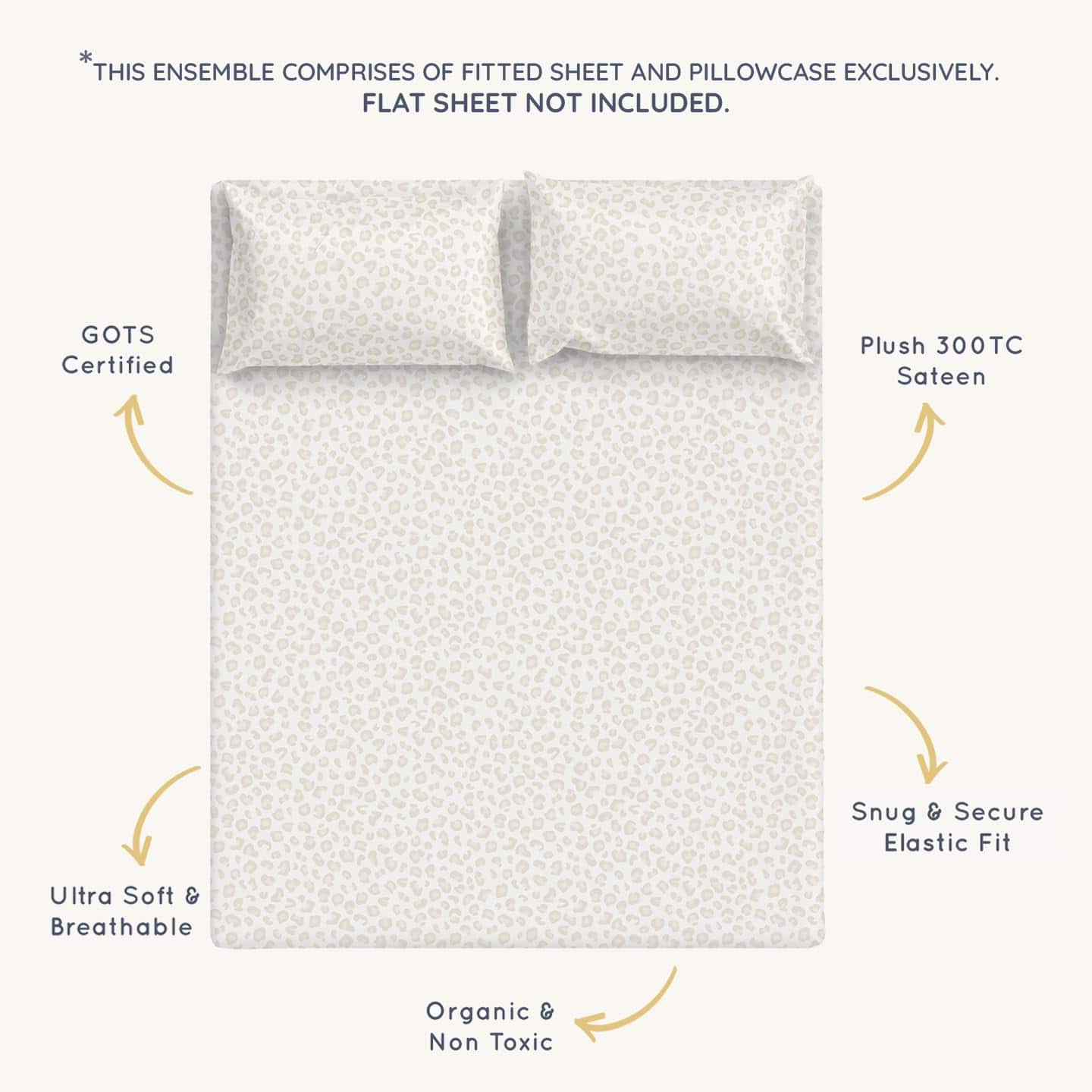 Nuestro juego de sábanas Queen incluye 1 sábana bajera – 60 X 80 + 17 (Bolsillo) Ideal para colchones Queen y 2 fundas de almohada – 20 X 30 – Es suavemente soñador y para la comodidad de su hijo durante la noche. Mejor aún, está certificado por GOTS, lo que significa que está tejido con los materiales más puros y libre de productos químicos tóxicos. All our designs are exclusive and designed in Florida for a fun look you won’t find anywhere else. This bedding is all about the right blend of modern and playful that elevates every kids’ dream room. Our designers draw inspiration from in trend styles to create a chic look with neutral palette in buttery soft sateen fabric. Only use the highest quality sateen for our sheet sets. Sateen is the smoothest noiseless weave and helps promote quieter healthier sleep. Tightly woven generous thread count means these organic sheets come out of the wash looking as good as they did going in. Organic cotton means there are no VOCs or chances of Off-gassing that children are extremely vulnerable to and natural cooling pure cotton ensures that the child never sleeps hot. Comes beautifully packed in reusable cotton bag ready for gifting. Every product goes through 12 quality checks during various stages before being shipped so that you have a great experience. All this is backed up with an incredible customer service within US, making this a completely risk-free & satisfactory purchase for you.