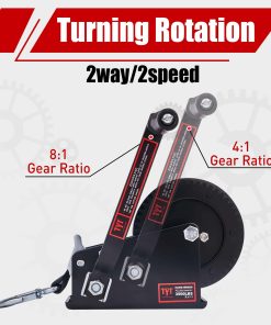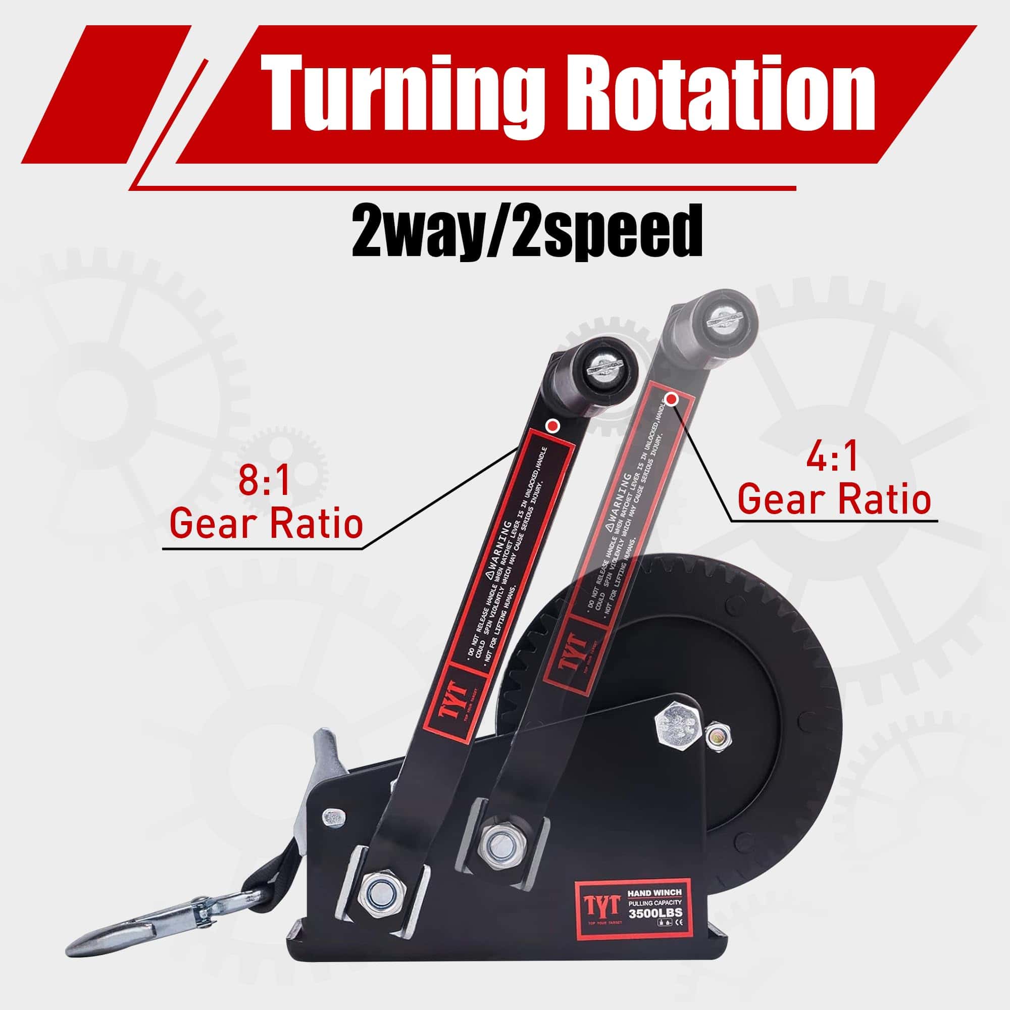 Alta calidad de acabado de recubrimiento de zinc-negro de malacate de remolque de barco para máxima resistencia y durabilidad que resiste la oxidación y la corrosión. Engranajes de acero endurecido, primera relación de velocidad 4:1, segunda relación de velocidad 8:1, relación de transmisión de alta eficiencia 4:1/8:1. Engranajes de acero de alto carbono para resistir el desgaste y durar más tiempo. Tamaño del mango de rendimiento: 25cm / 9.84in, el mango curvo de los malacates de correa TYT facilita el giro, para mover algo de 3500 lbs o menos, el mango antideslizante garantiza un agarre firme para menos fatiga del usuario y mayor productividad al girar el malacate manual pequeño. Gancho de amarre de trinquete de dos vías equipado con una trinquete de seguridad, que puede trincar hacia adelante y hacia atrás. El malacate de trinquete se puede usar para levantar objetos, arrastrar barcos o red de voleibol, Ideal para remolcar o cargar barcos, motos acuáticas personales y equipo de jardinería. Paquete y garantía Orificio de montaje estándar, tamaño pequeño y portátil, fácil de instalar. El paquete de caja interior pasa la prueba de rechazo de 1 metro, protege el producto de daños. 365 días de garantía, si tiene algún problema con nuestro malacate de engranaje TYT, no dude en contactarnos, le proporcionaremos una solución de satisfacción del 100%. Por favor, dé un paso adelante, únase a TOP YOUR TARGET, alcanzaremos juntos el objetivo.