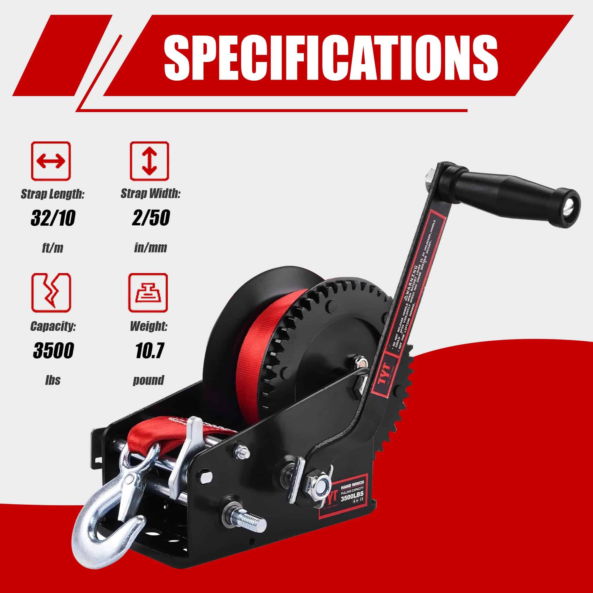 Malacate de Remolque de Barco TYT 3500LB con Correa Roja de
