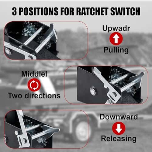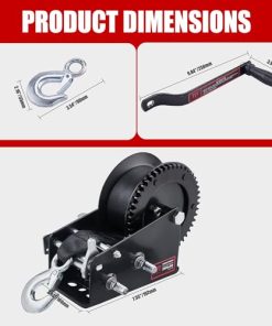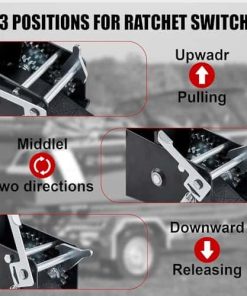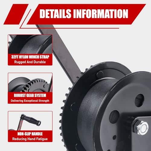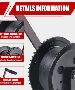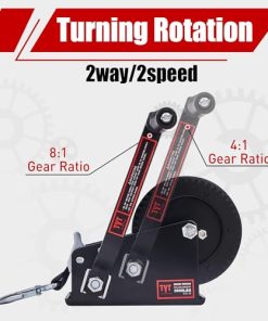 Capacidad de Malacate Negro TYT El malacate de manivela de acero resistente tiene una fuerza de tracción de 3500 lbs / 1600 kg, Color de la correa: Negro, Longitud de la correa: 10m (32 pies) 50mm, Tamaño de la base de montaje: 7.55 pulg x 3.93 pulg, Color del Malacate: Negro.