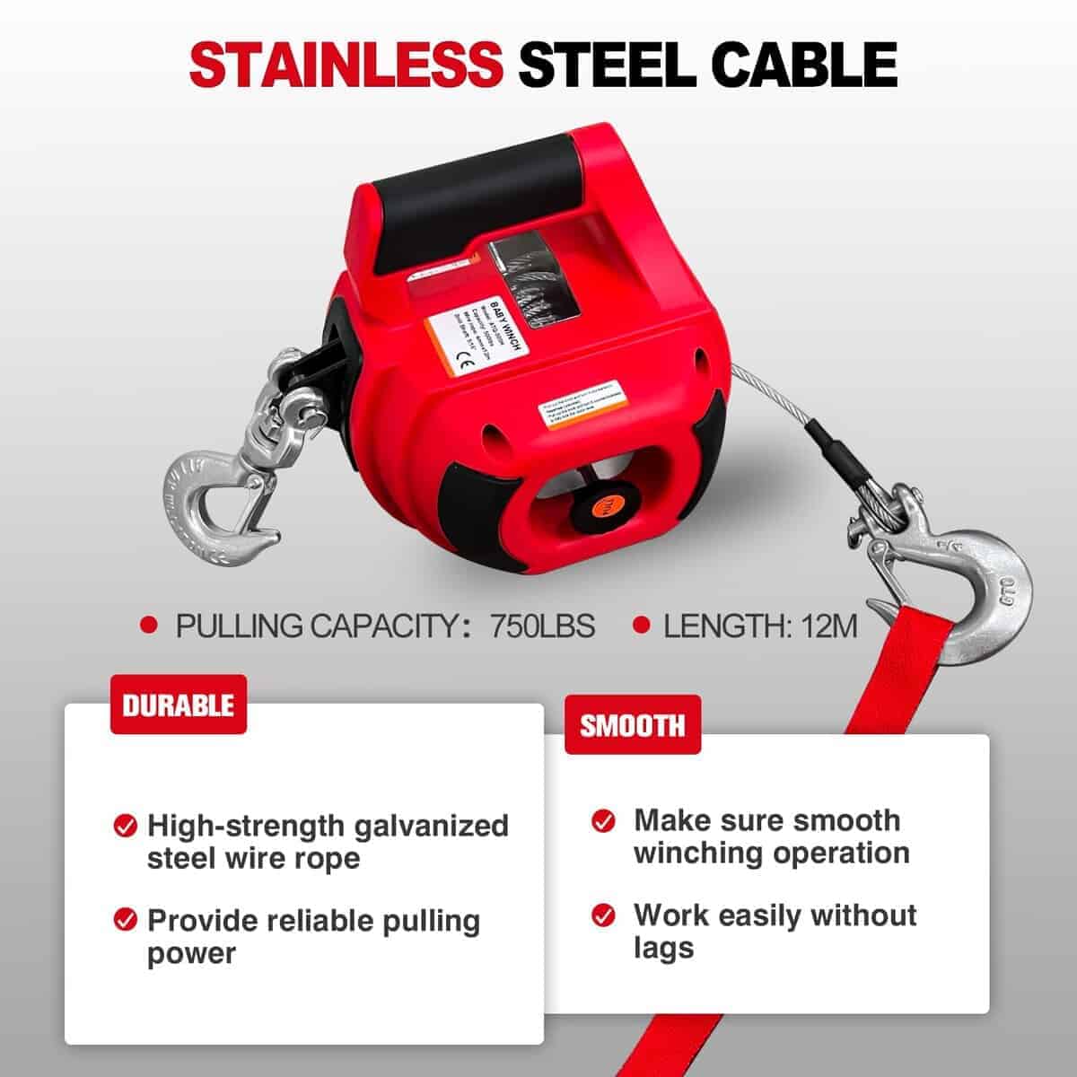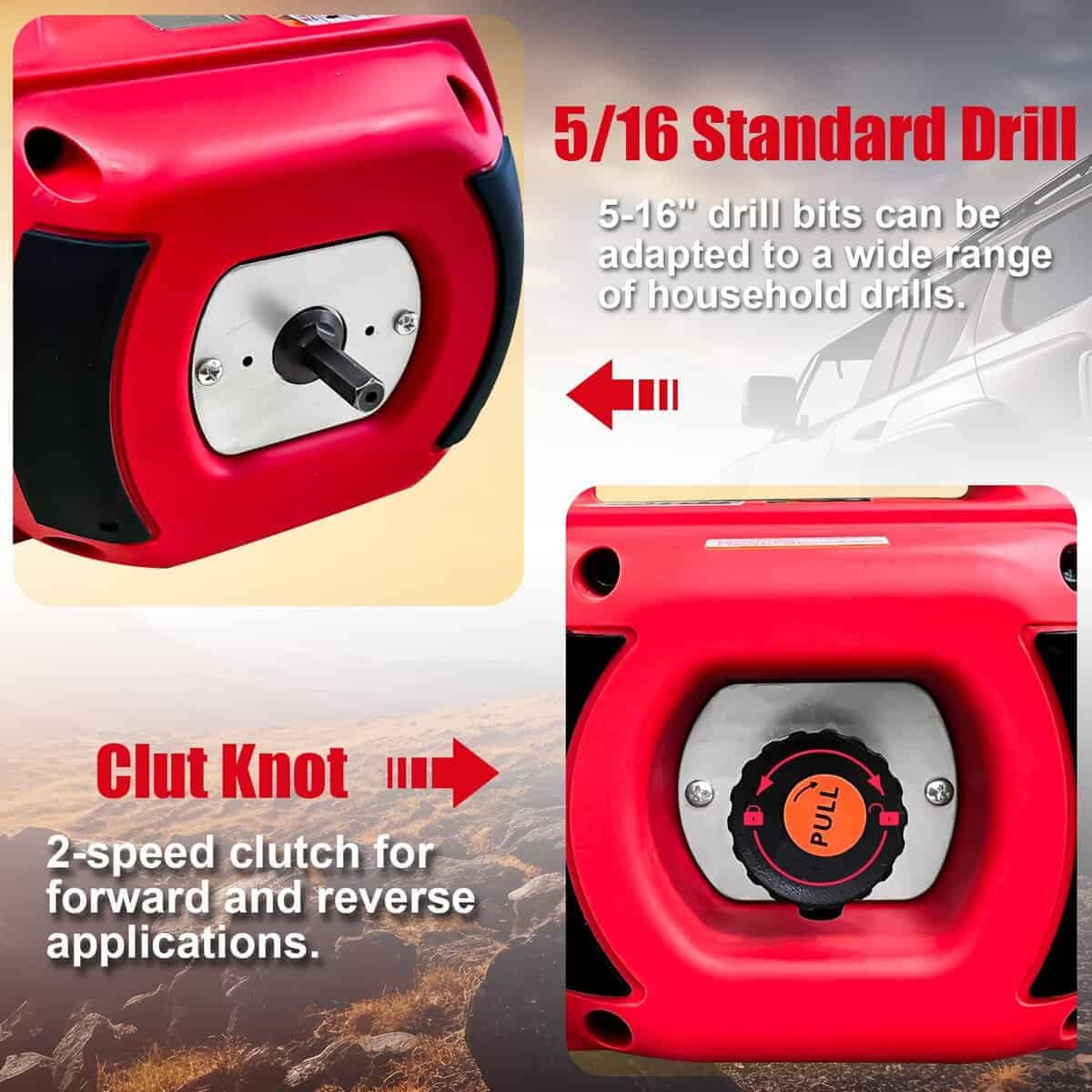 El FITHOIST Portable Drill Winch 750LBS es una herramienta poderosa que le brinda la capacidad de levantar, arrastrar y manejar objetos de hasta 750 libras. Con un cable de acero de aleación de 40 pies, esta herramienta proporciona una tracción vertical y horizontal confiable para garantizar una operación de malacate suave y eficiente. El malacate de taladro está diseñado con un embrague de 2 velocidades que le permite realizar aplicaciones hacia adelante y hacia atrás con facilidad. También presenta un diseño de bajo ruido gracias a sus engranajes planetarios de acero, lo que garantiza una experiencia de malacate sin ruido de trinquete molesto. Además, este malacate portátil cuenta con una ventana visible que le permite observar los cambios en el cable de acero durante su uso, junto con ganchos de anclaje y ganchos de cuerda giratorios para una operación segura y eficiente. Con una amplia aplicación que incluye manipulación de troncos, estiramiento de barandillas, manejo de motos de nieve y más, el malacate de taladro FITHOIST es una herramienta versátil y confiable para diversas necesidades de remolque.