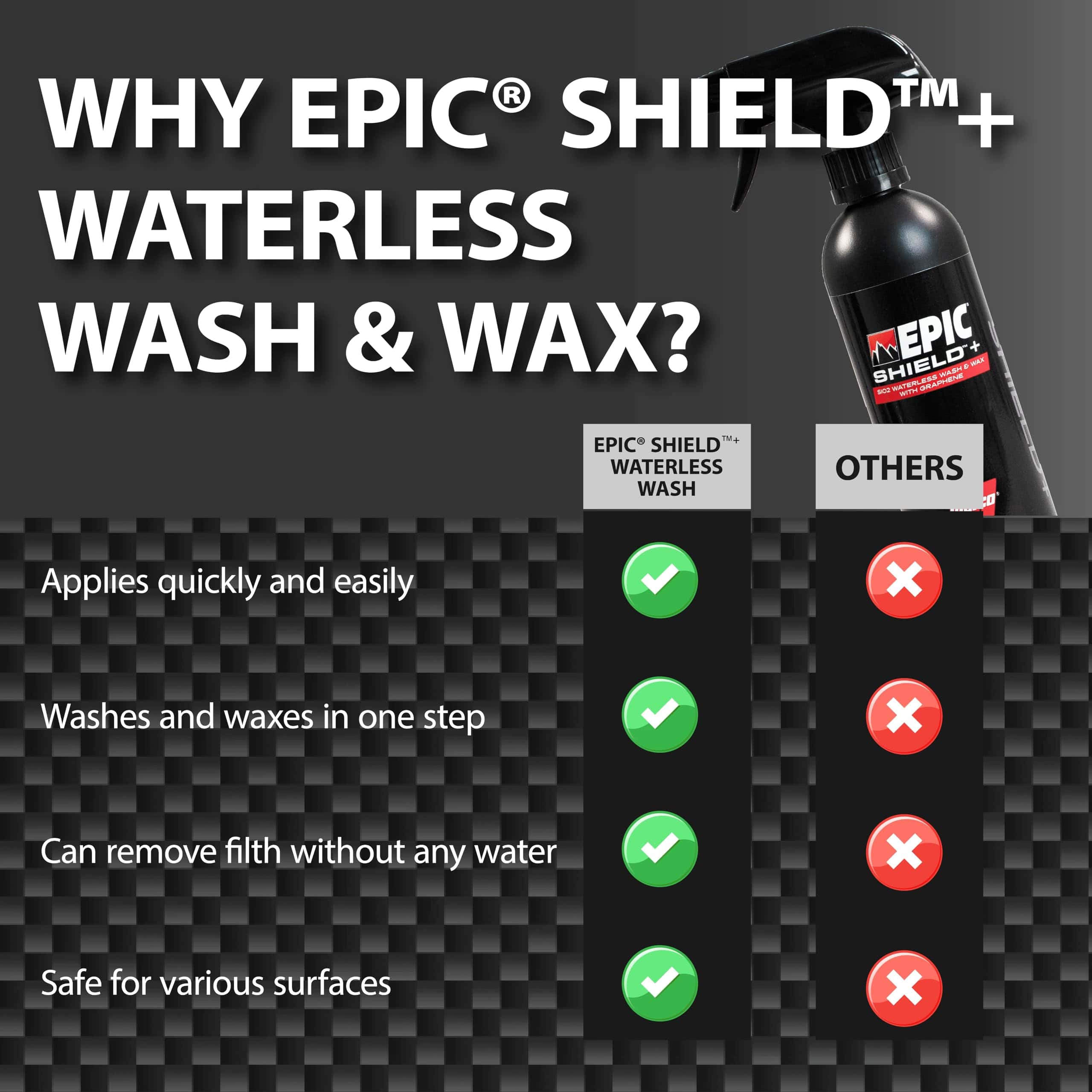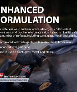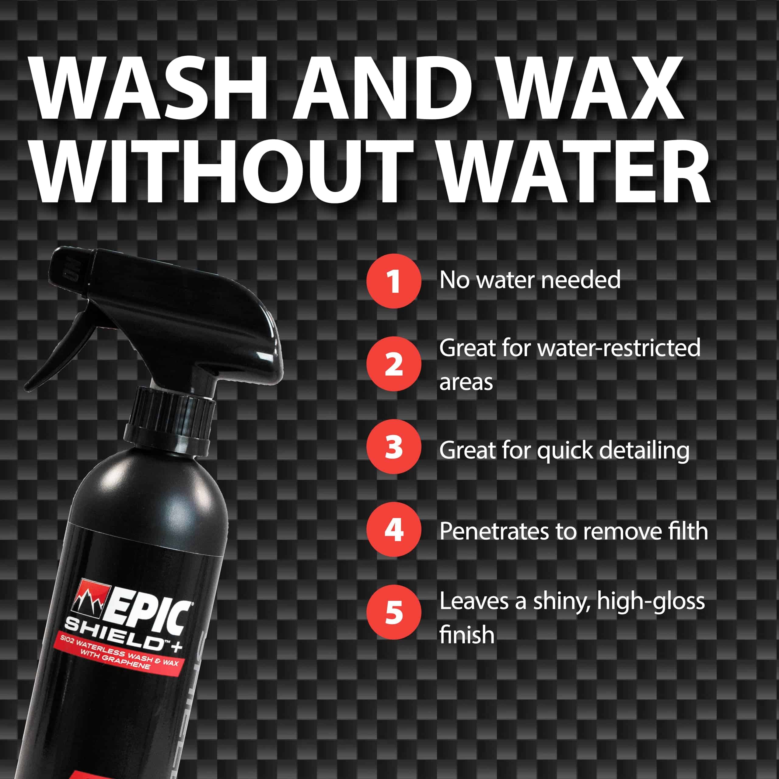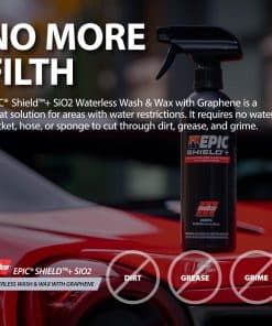 1. LAVA SIN AGUA: EPIC SHIELD+ SiO2 Waterless Wash & Wax con Grafeno te permite lavar tu auto de forma segura y efectiva sin utilizar agua, ahorrando tiempo y recursos.