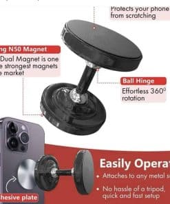 MAMMOTH MAG-EL ORIGINAL Gimnasio Imán de Móvil Magnético de 2 Vías – Fácil de Grabar Entrenamientos con Soporte Magnético de Teléfono – Montura Magnética con Agarre Magnético para Móvil – Soporte Magnético de Teléfono de Gimnasio con Imán de Doble Cara para Todos los Tipos de Teléfonos
