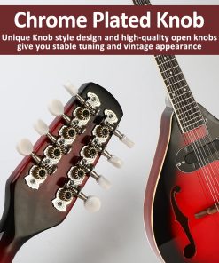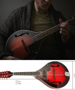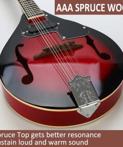Mandolina acústica de estilo A de 8 cuerdas de Eavnbaek con madera de abeto de alta calidad en color red burst. Esta mandolina es perfecta para principiantes y adultos, ya que su diseño considerado para la mano derecha la hace fácil de aprender y tocar. Viene equipada con todo lo necesario para empezar a tocar de inmediato, incluyendo pastilla, púas, correa, cuerdas adicionales, mochila y afinador. Su sonido es rico y brillante, ideal para varios estilos de música. Además, ofrecemos un servicio garantizado para asegurarnos de que nuestros clientes estén satisfechos con su compra. ¡Hazte con esta increíble mandolina y disfruta de su maravilloso sonido!