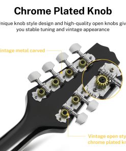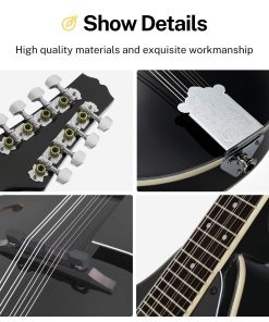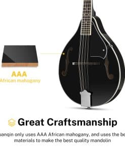 Especificaciones Color: Sunburst Número de Trastes: 20 Orientación de la mano: Derecha Forma del mástil: Forma «C» Espalda y lados: Caoba africana de AAA Parte superior del cuerpo: Caoba africana de AAA Material del mástil: Caoba africana de AAA Incrustaciones de posición: Puntos Incluidos en el paquete: 1 x Mandolina DML-1 1 x Gran bolsa 1 x Cuerdas de guitarra 1 x Afinador DT-2 1 x Paño de pulido 2 x Púas
