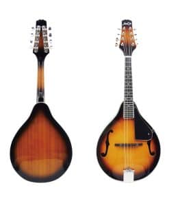 Mandolina JinQu Modelo A para principiantes, niños, adultos. Esta mandolina acústica de 8 cuerdas presenta una selección de madera de alta calidad, con tilo para la parte superior y Sapele para los paneles traseros, lo que la convierte en la mandolina perfecta. La cuidadosa selección de madera y la perfecta mano de obra permiten que esta mandolina produzca un sonido etéreo y claro, lo que la convierte en una excelente elección para músicos de todos los niveles. Diseñada con un enfoque en la comodidad del músico, esta mandolina se toca con púas, evitando dolor en los dedos. Con un rango de 20 trastes, es apta tanto para principiantes como para músicos experimentados. El afinador de engranajes abiertos cromados hace que sea fácil de ajustar y se mantenga en sintonía. El esquema de color exquisito con una combinación de colores Sunburst y un acabado de laca de alto brillo para un aspecto vintage la hacen lucir magnífica. La mandolina es ligera y portátil, lo que la convierte en una excelente opción para llevarla a donde quiera que vayas. Ya sea como regalo o como instrumento musical, la Mandolina JinQu Modelo A es una elección perfecta.
