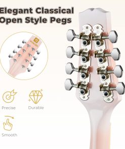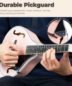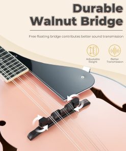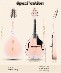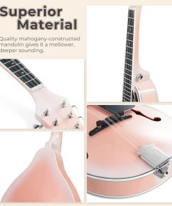 Mandolina Vangoa A Style Instrumento Musical Mandolina para Principiantes Niños Adultos, 8 Cuerdas Mandolina Acústica de Caoba Kit Inicial, Rosa Especificaciones: Tapa, cuerpo y clavijero: Caoba Diapasón: Madera de ingeniería Tamaño: 27.5 pulgadas Peso: 3 lb Acabado brillante Número de trastes: 20 Color: Rosa Orientación de la mano: Derecho Material de las cuerdas: Acero Lo que obtienes: 1 x mandolina acústica de 26 pulgadas 1 x funda acolchada 1 x Manual 1 x correa 1 x cuerdas extra 1 x afinador de pinza 4 x púas