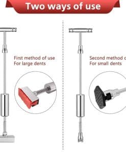2. Reparación sin pintura – El tirador de abolladuras en forma de T está hecho de acero inoxidable al carbono templado y acero inoxidable estándar. En las partes del cuerpo en contacto con el preciso paquete de goma de alta calidad, puede evitar dañar la pintura original.