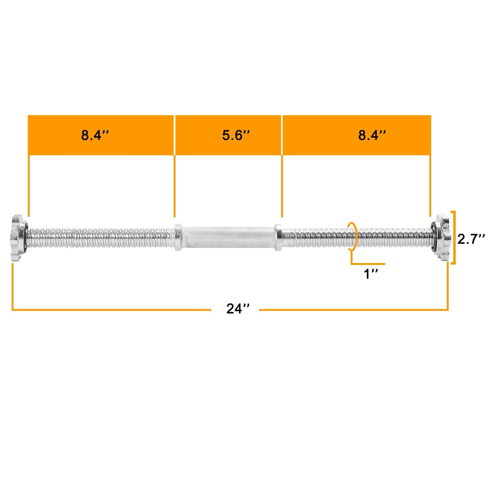 Las barras de mancuernas roscadas cromadas de 1 pulgada son una excelente adición a tu gimnasio en casa. Fabricadas con acero resistente y cromado, estas barras son resistentes al óxido y duraderas. Con una longitud de 24″, se adaptan a todas las placas estándar con agujeros de 1″, lo que las hace ideales para una variedad de ejercicios con mancuernas. Su diseño ajustable te permite cambiar fácilmente los niveles de peso, mientras que el mango antideslizante proporciona un agarre seguro durante tus entrenamientos. Las placas de peso se aseguran con collares de bloqueo para evitar que se deslicen durante el ejercicio, y las bandas resistentes a la pérdida en los collares te ofrecen un ensamblaje de placas de peso más seguro y seguro. Estas barras de mancuernas son versátiles y pueden usarse para una amplia variedad de patrones de movimiento, ya sea en casa, en salas de pesas, garajes o en clubes deportivos profesionales para esculpir y tonificar tus brazos.