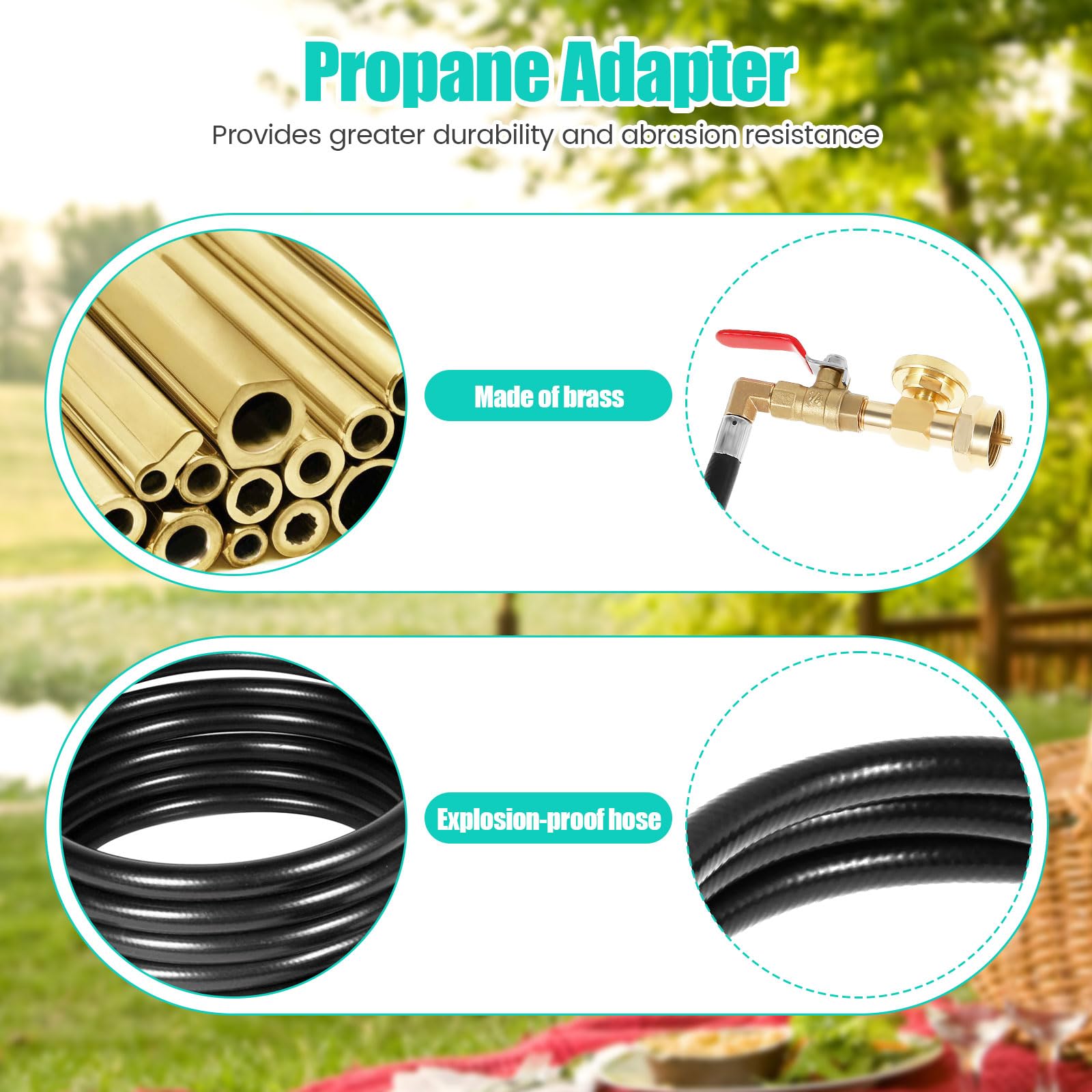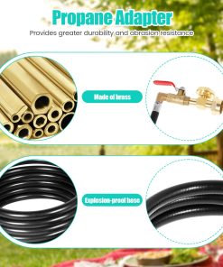 3. Fácil de usar El adaptador de llenado de propano con válvula de control ON-OFF es fácil de instalar y conecta los cilindros grandes a los tanques de propano de 1 lb con 50 » de tubería de conexión para facilitar su uso.