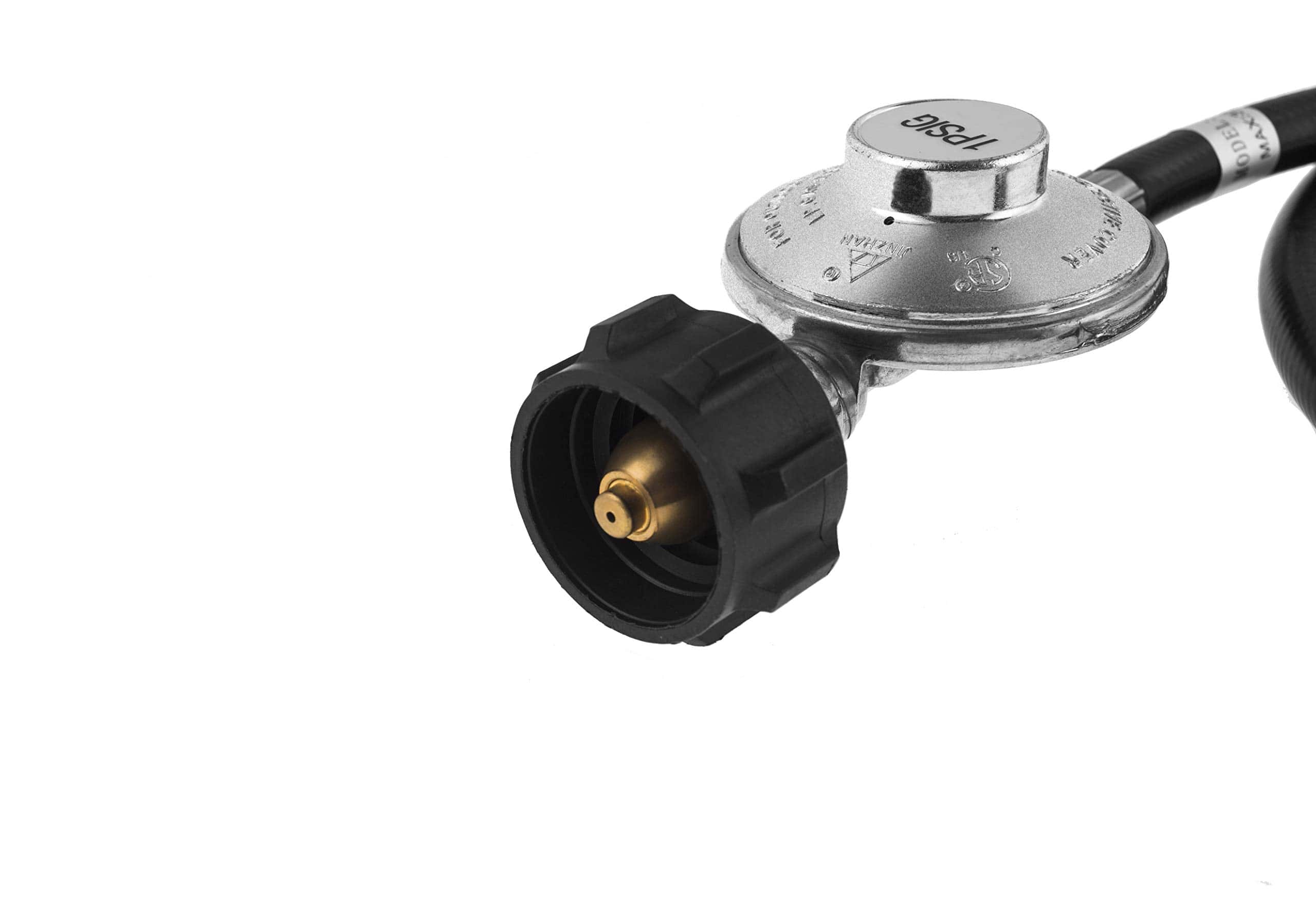 LS’BABQ 6 Ft Propane Adapter Hose 1 Ib to 20 Ib Converter and Gas Regulator fit for Coleman Roadtrip Portable Grill. Esta manguera adaptadora de propano de 6 pies se adapta a electrodomésticos de 1 lb a 20 lb y es ideal para conectar parrillas portátiles Coleman Roadtrip. Es fácil de instalar y está fabricada con latón sólido de alta calidad para una conexión segura. El regulador de propano certificado por CSA y la manguera cuentan con una función de protección de flujo excesivo para mayor seguridad. Reviva su parrilla Coleman con este kit de repuesto de alta calidad.
