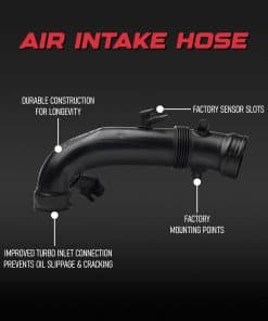 1. MANGUERA DE ADMISIÓN DE AIRE – Esta manguera de admisión de aire, a veces conocida como conducto de admisión, bota de admisión, manguera de filtro de aire o tubo de admisión, se encuentra entre la caja de admisión de aire y el turbo en su Cooper 1.6L. Con el tiempo, la manguera de fábrica de su vehículo puede desarrollar grietas y agujeros, lo que puede resultar en una luz de verificación del motor (CEL), una mala economía de combustible y vacilación durante la aceleración.