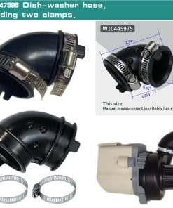 Nueva Manguera de Bomba de Circulación para Lavavajillas W10445975, compatible con Whirlpool, Amana, Kitchen Aid, Maytag, Kenmore. Incluye dos abrazaderas. Reemplaza AP5618621 2312026 PS3651318 W10445975VP. La manguera de bomba de lavavajillas W10445975 ha sido continuamente probada, mejorada y optimizada en nuestra fábrica, siendo perfectamente apta para los lavavajillas más comunes del mercado, recomendada tanto para reparadores profesionales como para reparaciones caseras de electrodomésticos de cocina. La manguera de lavavajillas W10445975 está hecha de goma de alta calidad y fabricada estrictamente según las normas ISO9001. Comparada con versiones anteriores, la impermeabilización y la vida útil de la manguera de lavavajillas W10445975 están considerablemente mejoradas. Incluye dos abrazaderas para un montaje completo.