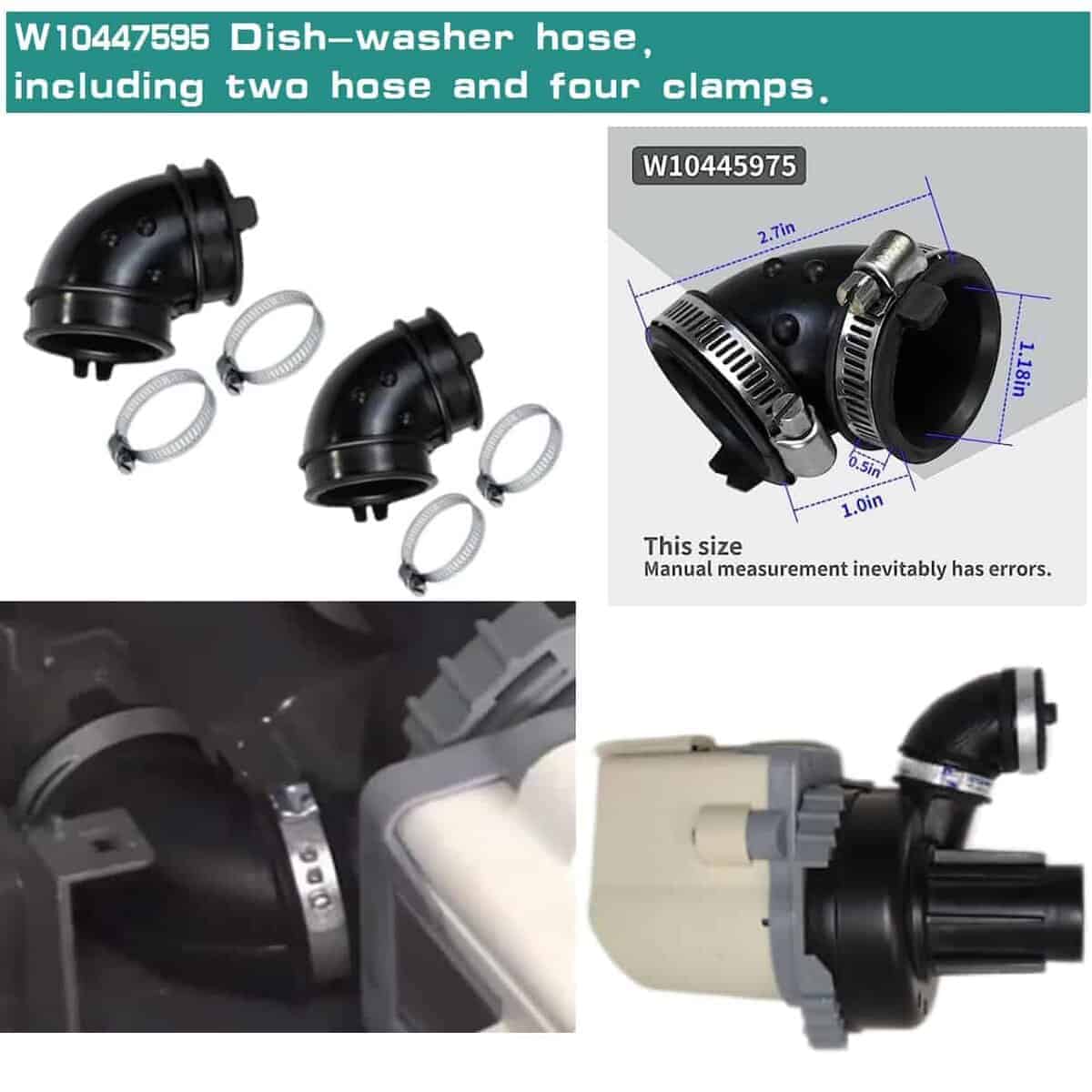 2. Manguera de Bomba a Sump para Lavavajillas W10445975 Compatible con Whirlpool Reemplaza AP5618621 2312026 PS3651318 W10445975VP Incluye dos mangueras y cuatro abrazaderas.