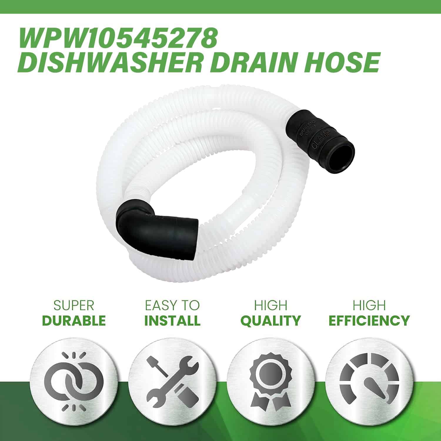 1. Manguera de bucle de drenaje para lavavajillas WPW10545278 La manguera de bucle de drenaje para lavavajillas WPW10545278 es una pieza de repuesto de calidad OEM, limpia tu lavavajillas de agua extra para que tus platos se sequen fácilmente.
