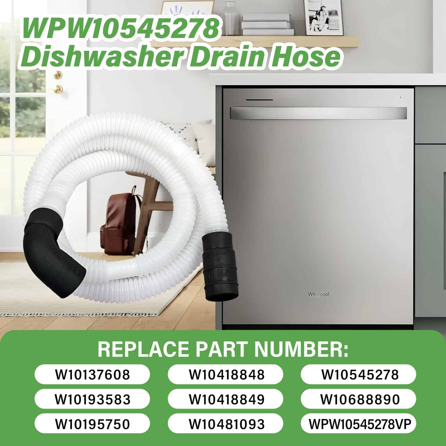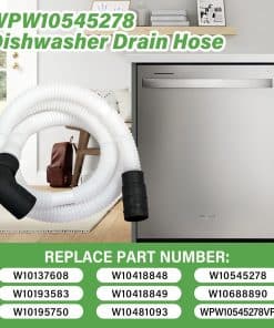 2. Números de repuesto La manguera de bucle de drenaje para lavavajillas WPW10545278, reemplaza a W10137608, W10193583, W10195750, W10418848, W10418849, W10481093, W10545278, W10688890, WPW10545278VP, 3527803, AP6022802, PS11756139, EAP11756139.