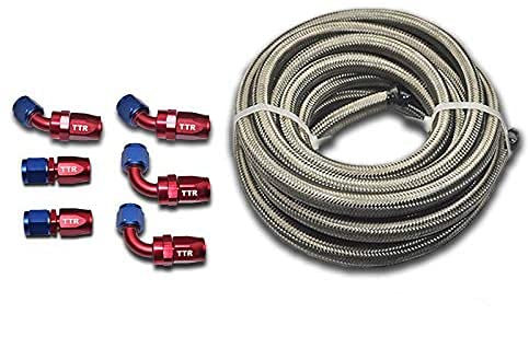 El paquete incluye: Manguera de combustible de acero inoxidable AN-4 x 12 pies / Conexión recta AN-4 x 2 / Conexión en ángulo de 45 grados AN-4 x 2 / Conexión en ángulo de 90 grados AN-4 x 2. Características del producto: Esta manguera de combustible de acero inoxidable trenzado está especialmente diseñada para funcionar en cualquier proyecto automotriz. Esta manguera proporciona niveles insuperables de rendimiento y confiabilidad para sus aplicaciones de alto rendimiento. Ideal para altas temperaturas y presiones, ofrece una amplia gama de compatibilidad con fluidos. La manguera está hecha de poliuretano de alta calidad en el interior que le proporciona alta resistencia química y térmica, junto con una capa exterior de acero inoxidable trenzado que le otorga alta durabilidad, resistencia a la presión extrema y una apariencia profesional y tecnológica. El interior liso garantiza un flujo óptimo. El poliuretano es flexible y resistente y, combinado con la trenza de acero inoxidable, puede funcionar bajo alta presión y en condiciones de flexión y vibración continua.