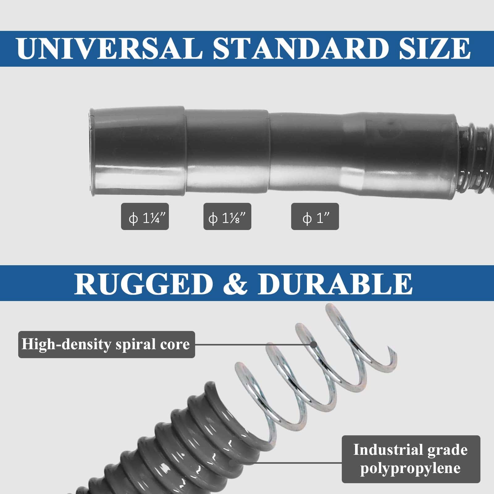 Esta manguera de desagüe universal de 8 pies para lavadoras está hecha de caucho duradero y flexible y en orden para solucionar los problemas más comunes, incluidos el doblado, pellizco, obstrucción o goteo. Además, la extensión de manguera tiene la longitud suficiente para llegar desde su lavadora hasta su fregadero o desagüe directo. Las suaves corrugaciones aseguran que pueda doblar la manguera sin romperla. Notas: 1. La variabilidad de 3-5 cm es posible debido al proceso de medición. 2. Debido a la luz de disparo, es posible que el color real sea ligeramente diferente de la imagen. Los pasos de instalación son solo de referencia: 1. Mida el diámetro de la boca de agua de su lavadora. 2. Corte el extremo de la manguera para que se ajuste a la boca de agua. 3. Atornille la abrazadera de la manguera lo más apretado posible. 4. Pruebe para evitar fugas de agua.