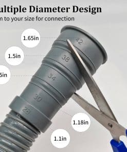 Paquete incluido: 1 manguera de desagüe de 2,5 m (8 pies), 1 soporte en forma de U para manguera, 2 abrazaderas de manguera, 1 rollo de cinta sellante. Instalación fácil y rápida: 1. Mide el diámetro de la lavadora, lavavajillas o fregadero. 2. Comprueba el tamaño del conector de la manguera, elige el calibre de tamaño más adecuado para recortar el extremo de la manguera para que se ajuste a la boca. 3. Utiliza la cinta sellante para envolver alrededor del anillo exterior de la boca. Coloca la abrazadera de manguera en la manguera de desagüe e instálala. Aprieta la abrazadera de manguera. La instalación ha finalizado.