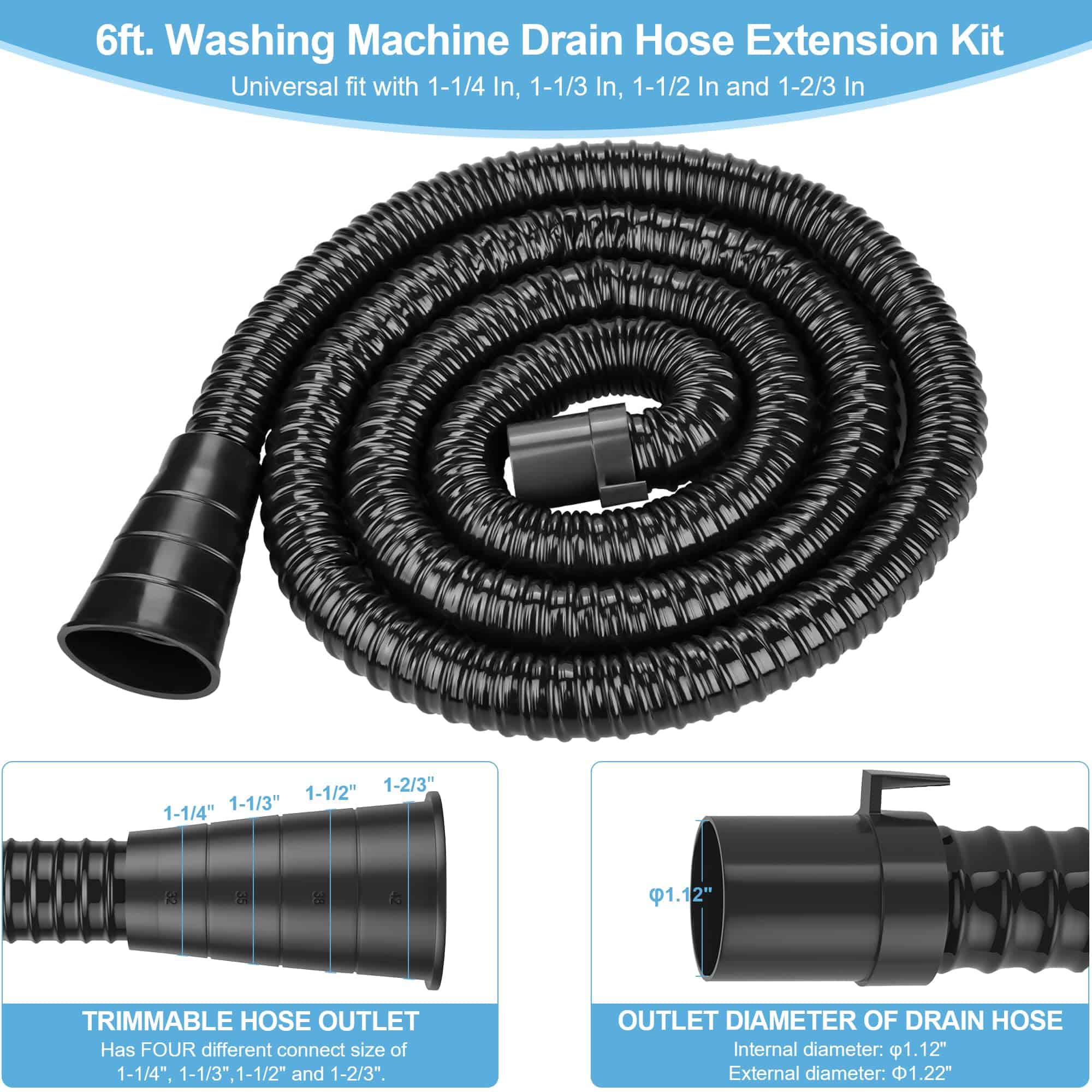 Manguera de desagüe para lavadora MyLifeUNIT (Negro)