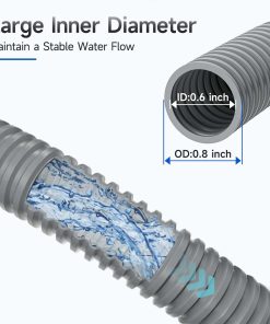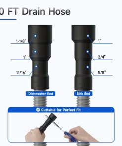 La manguera de desagüe para lavavajillas JUWO de 10 pies es una solución versátil para cocinas grandes y hogares donde se requiere un desagüe a larga distancia. Su diseño universal se adapta a extremos de lavavajillas de 11/16″, 1″ y 1-1/8″, así como a extremos de fregadero de 5/8″, 3/4″ y 1″. Los extremos de goma pueden cortarse al tamaño adecuado para tu instalación. La construcción reforzada con corrugado de PP garantiza flexibilidad y durabilidad en espacios reducidos, mientras que el diseño a prueba de fugas con abrazaderas de acero inoxidable asegura una conexión segura y sin fugas. La instalación es fácil, solo tienes que recortar el extremo de la manguera al tamaño deseado y apretar las abrazaderas.
