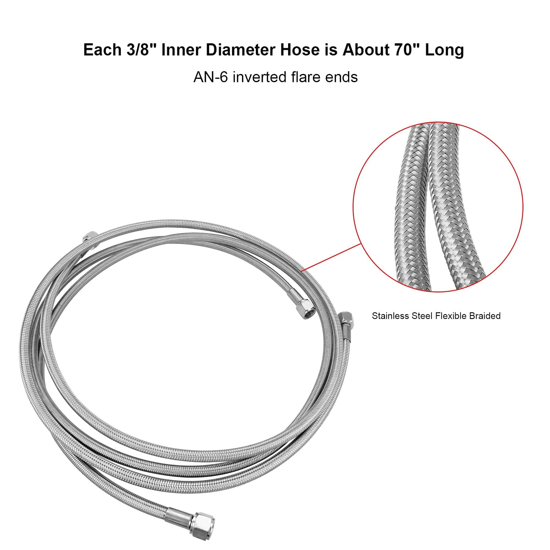 Compatible con – para Ford C4 – C6 – AOD, para Turbo 350 (Algunas son 1/4″ NPT), para Turbo 400, para Turbo 200 – 200R4, para Power Glide (Algunas son 1/4″ NPT), para 700R4 – 4L60 – 4L60E – 4L65E, para GM Chevy 1996 y posteriores 4L80E. Ajuste – Manguera de enfriador de transmisión que se ajusta para GM Chevy 1996 y posteriores 4L80E. Servicio – Período de servicio al cliente de 2 años. Si tiene algún problema con sus productos, por favor, responda por correo electrónico a tiempo. Le ayudaremos a resolver todos los problemas lo antes posible. Paquete Incluido: 1. Aproximadamente 70 pulgadas y 3/8″ I.D. Mangueras de Acero Inoxidable Trenzado; 2. Adaptadores billetados AN-6 a 1/4″ NPT; 3. Adaptadores billetados AN-6 a 3/8″ NPT; 4. Adaptadores billetados de 90 grados AN-6 de rosca inversa a rosca AN-6; 5. Adaptadores de aluminio 4L80E.
