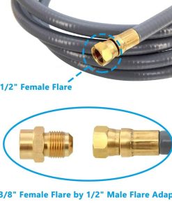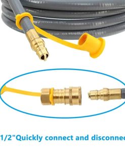 Manguera de 1/2″ de diámetro interno con enchufe de desconexión rápida de 1/2″ x conexiones hembra de 1/2″ y adaptador macho de 3/8» hembra de 1/2» de latón. La manguera de 1/2 pulgada de diámetro interno tiene la capacidad de BTU necesaria para parrillas de 30 pulgadas o más grandes para uso con gas natural. Incluye adaptador de latón hembra de 3/8» a macho de 1/2», que le permite convertir NG a electrodoméstico de propano con conector macho de 3/8″. Viene con tapa y tapón contra el polvo para proteger el adaptador de latón. Certificación CSA – Pasa el certificado CSA para su seguridad.